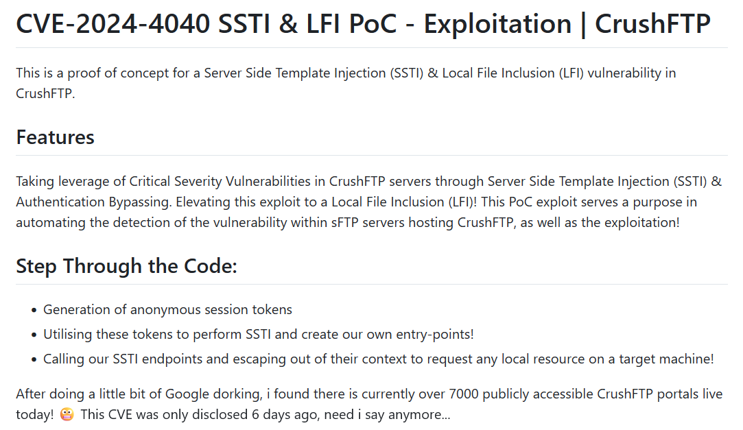 The severity is underscored by the potential for ransomware and other adversaries to target file transfer technologies. This vulnerability is especially concerning given historical exploitation of similar flaws in CrushFTP, such as the 2024 zero-day (CVE-2024-4040), which allowed complete server compromise.