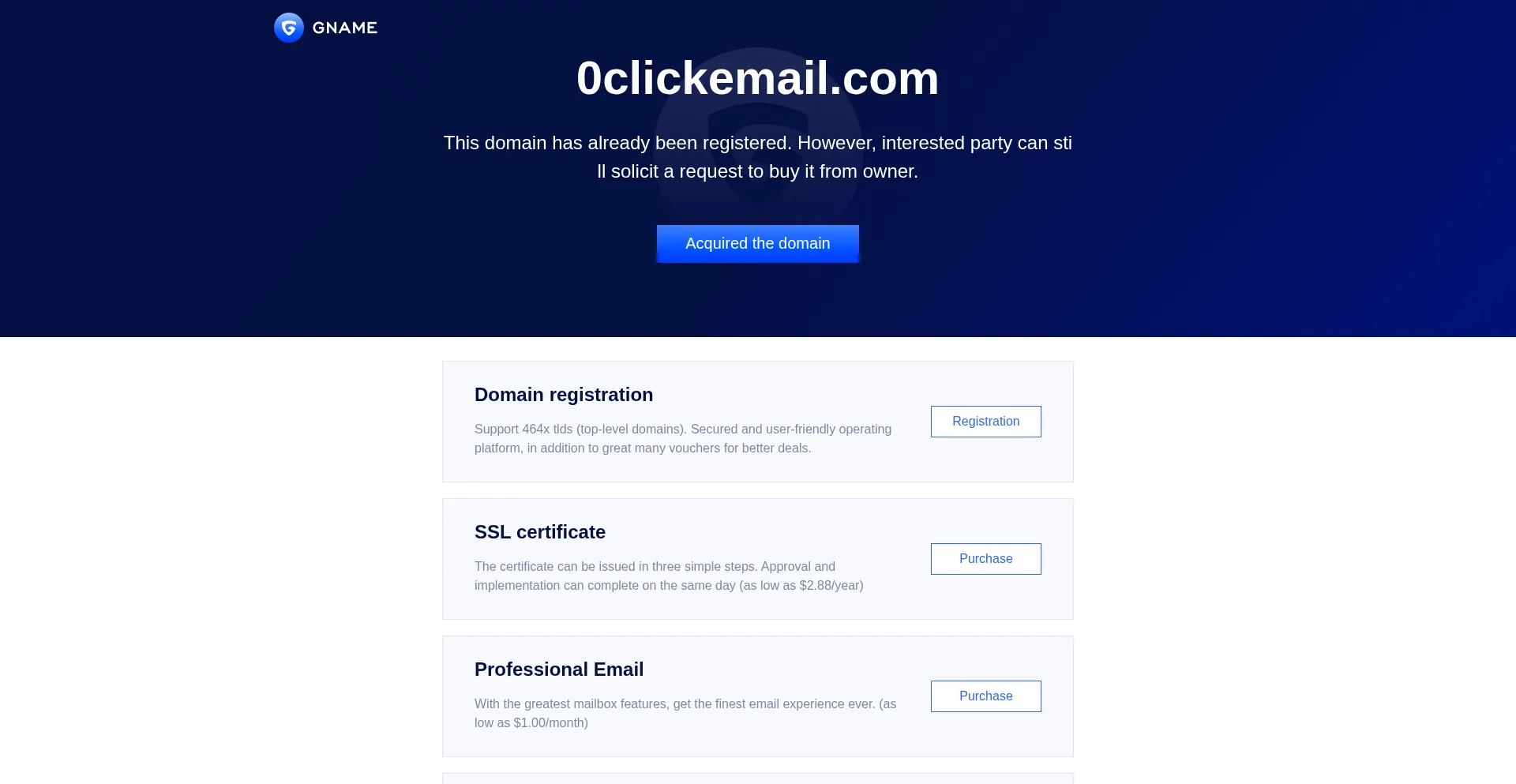 0clickemail.com this domain has already been registered. However, interested party can still solicit a request to buy it from owner.