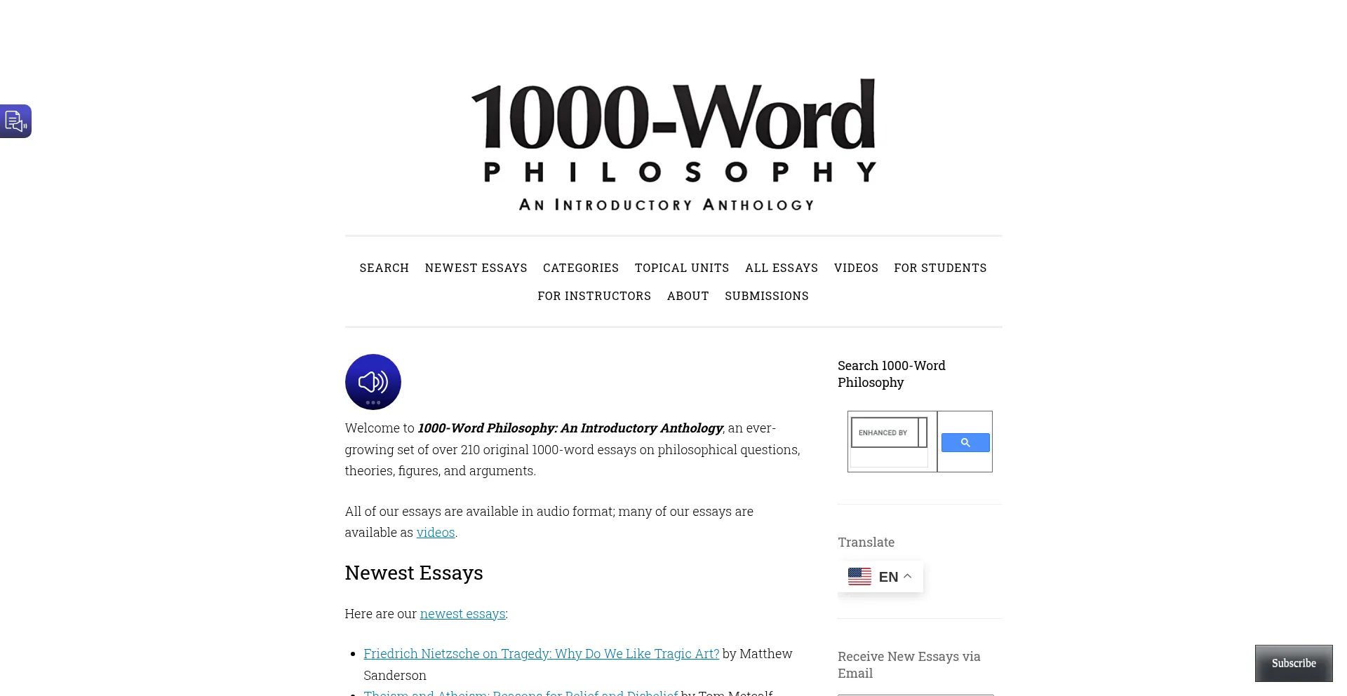 Welcome to 1000-Word Philosophy: An Introductory Anthology, an ever-growing set of essays on philosophical questions, theories, figures, and arguments.