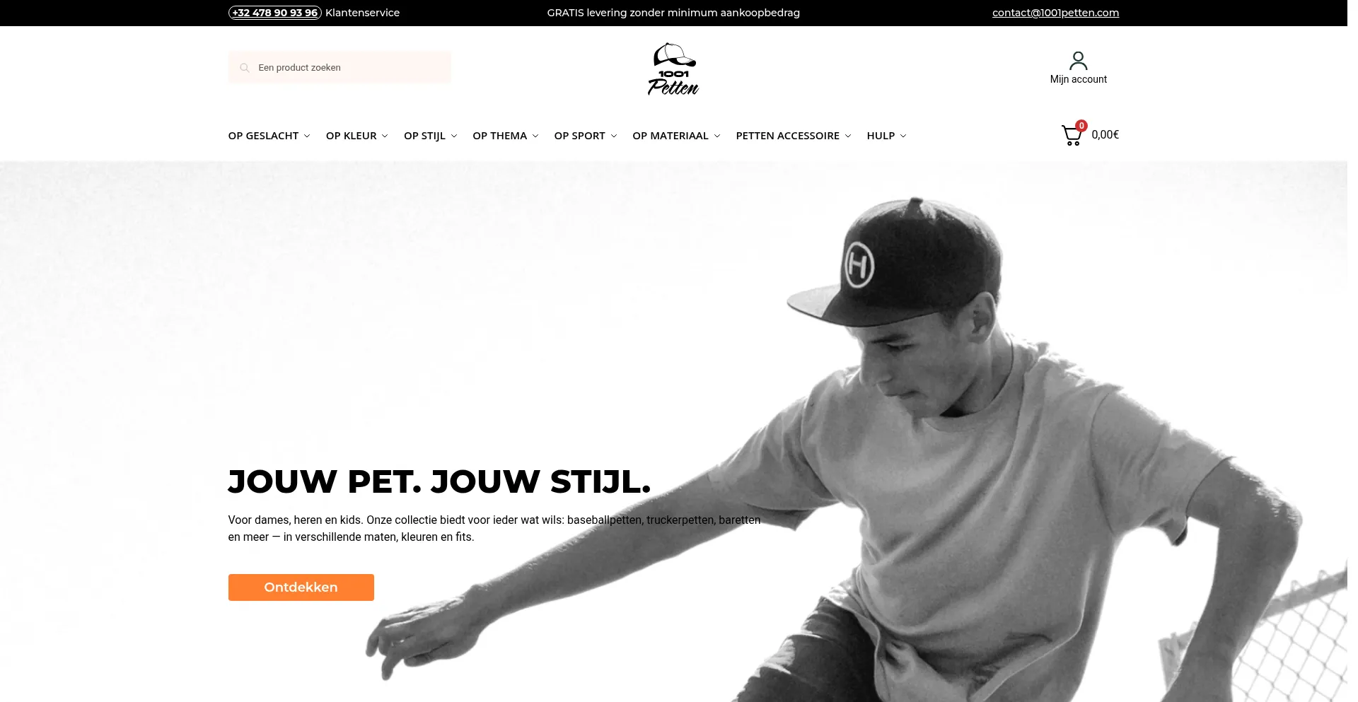 Voor dames, heren en kids. Onze collectie biedt voor ieder wat wils: baseballpetten, truckerpetten, baretten en meer — in verschillende maten, kleuren en fits.