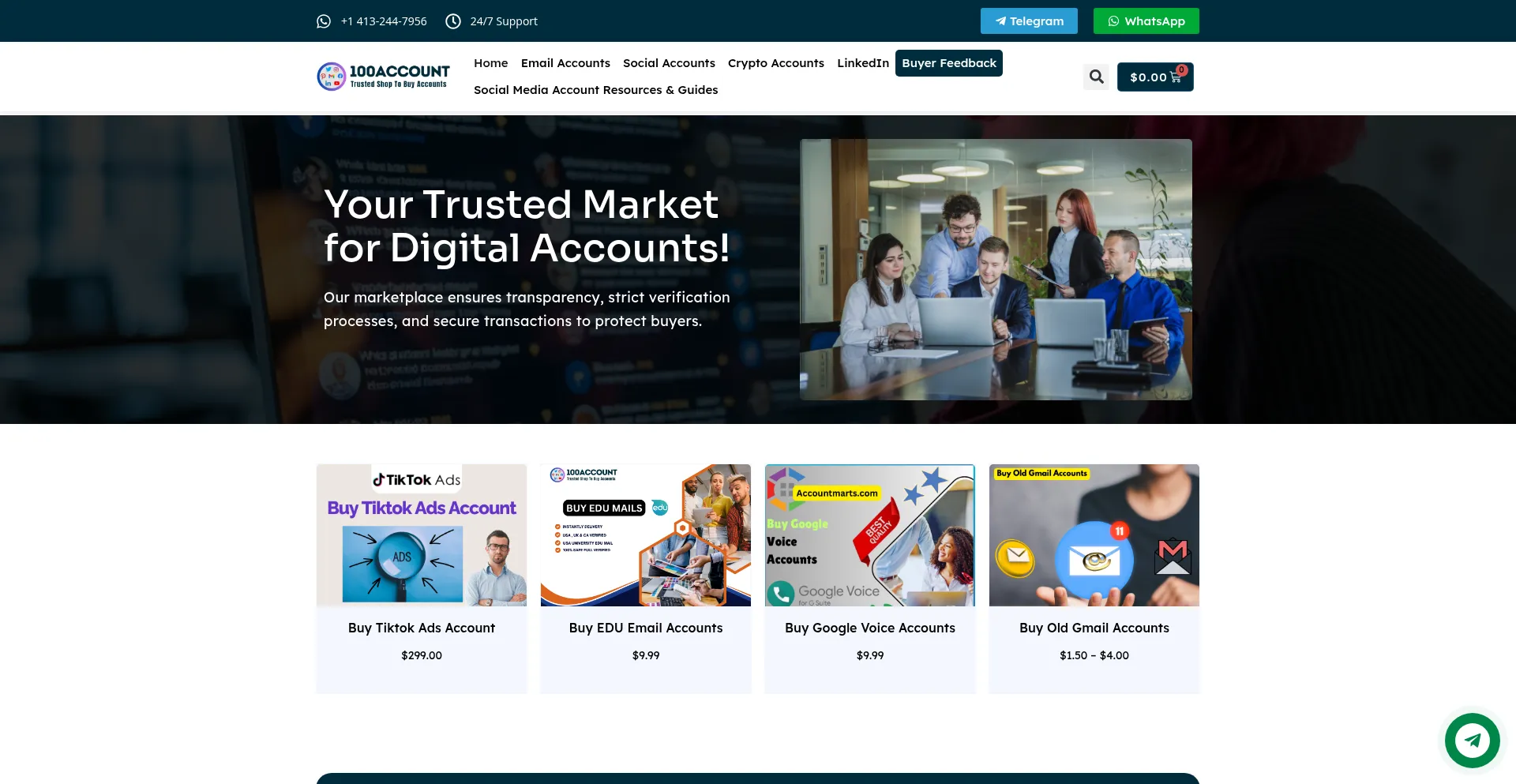 Analysis indicates that 100account.com operates as an e-commerce platform facilitating online transactions for goods or services. The website implements shopping cart functionality, payment processing systems, and product catalog features typical of commercial retail operations.