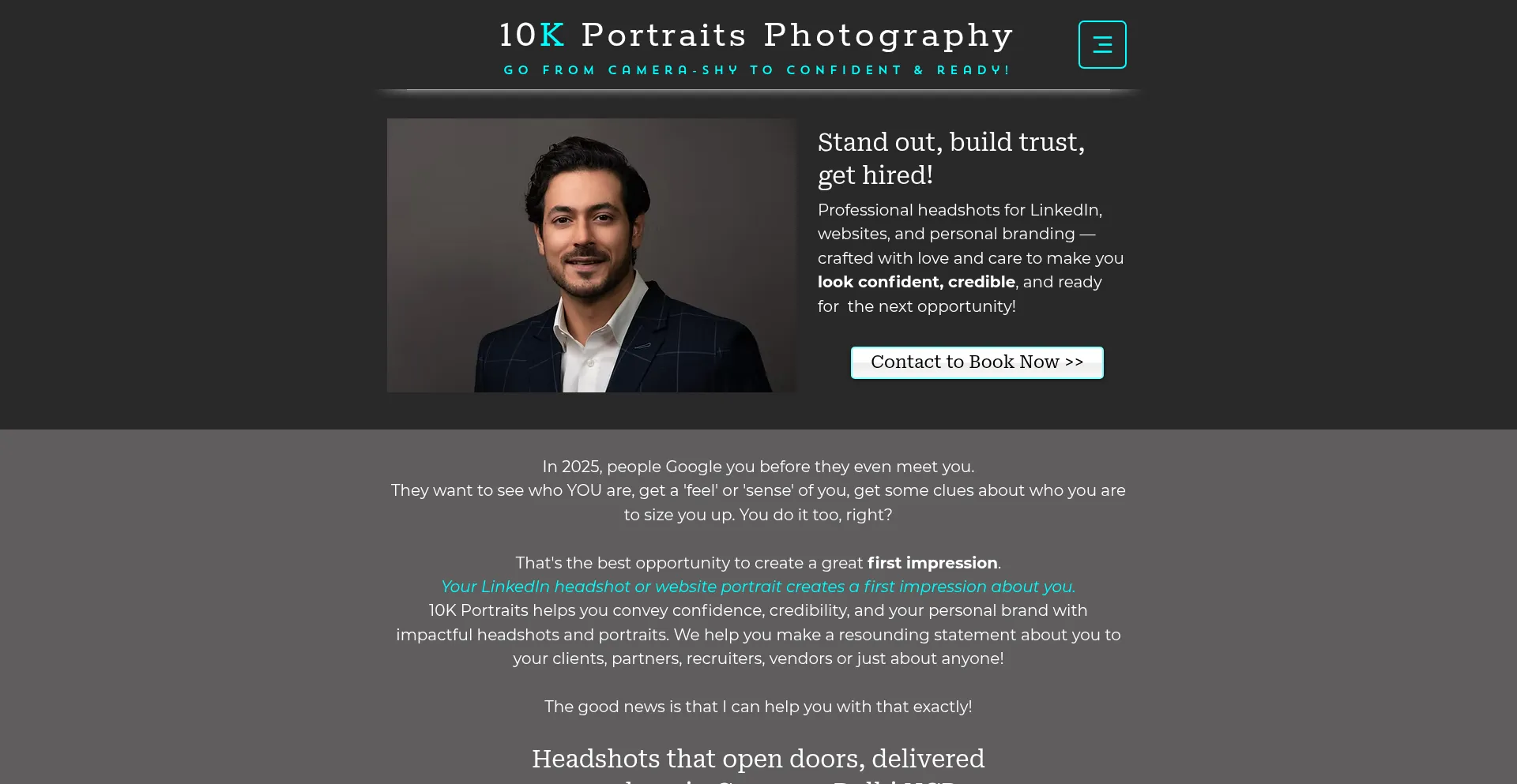 10k Portraits is a high-quality, professional headshots and portrait photography service for social media profiles and personal branding.