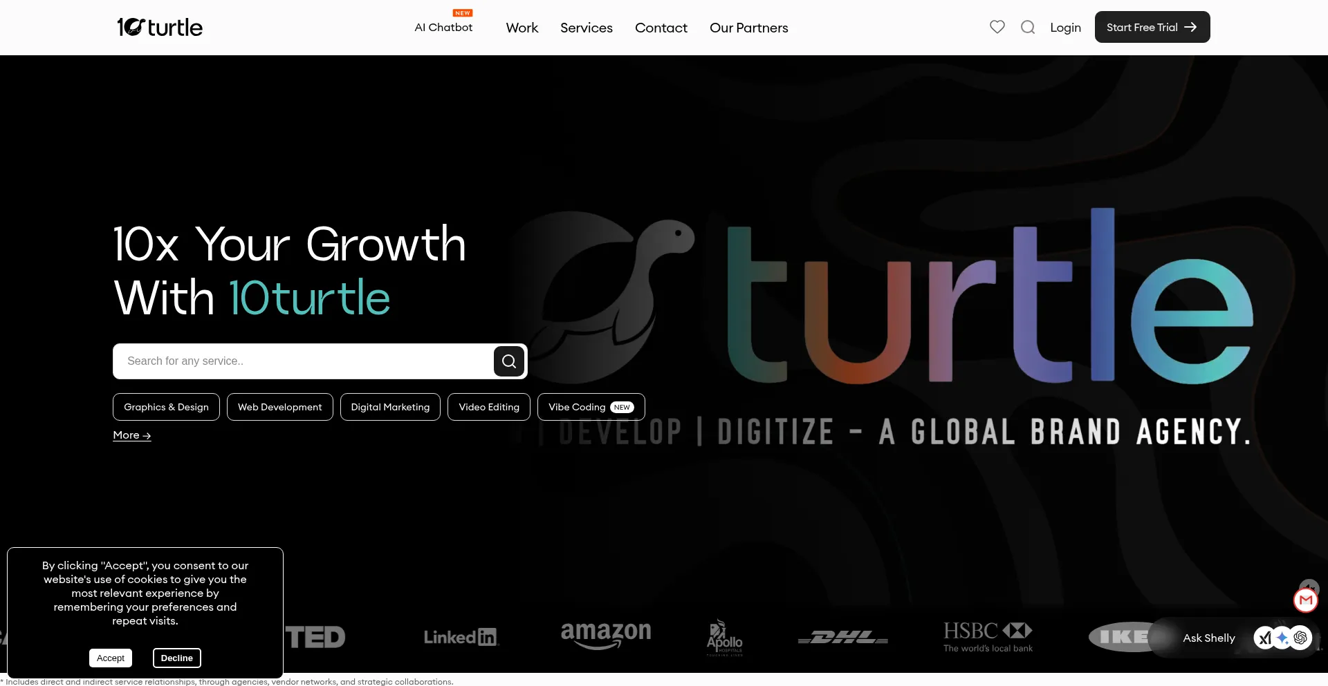 Elevate your brand with 10turtle's AI-powered web, graphic & app design. Expert Wix, Webflow, Shopify solutions for SEO-optimized sites that drive growth. Book free consultation...