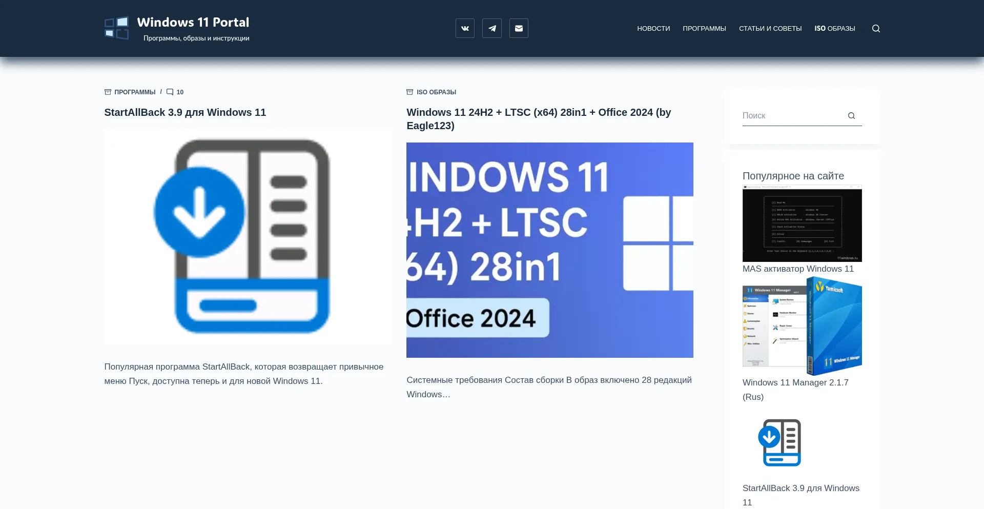 Информационный сайт об операционной системе Windows 11 от Microsoft. ISO образы, статьи, настройки, програм�...