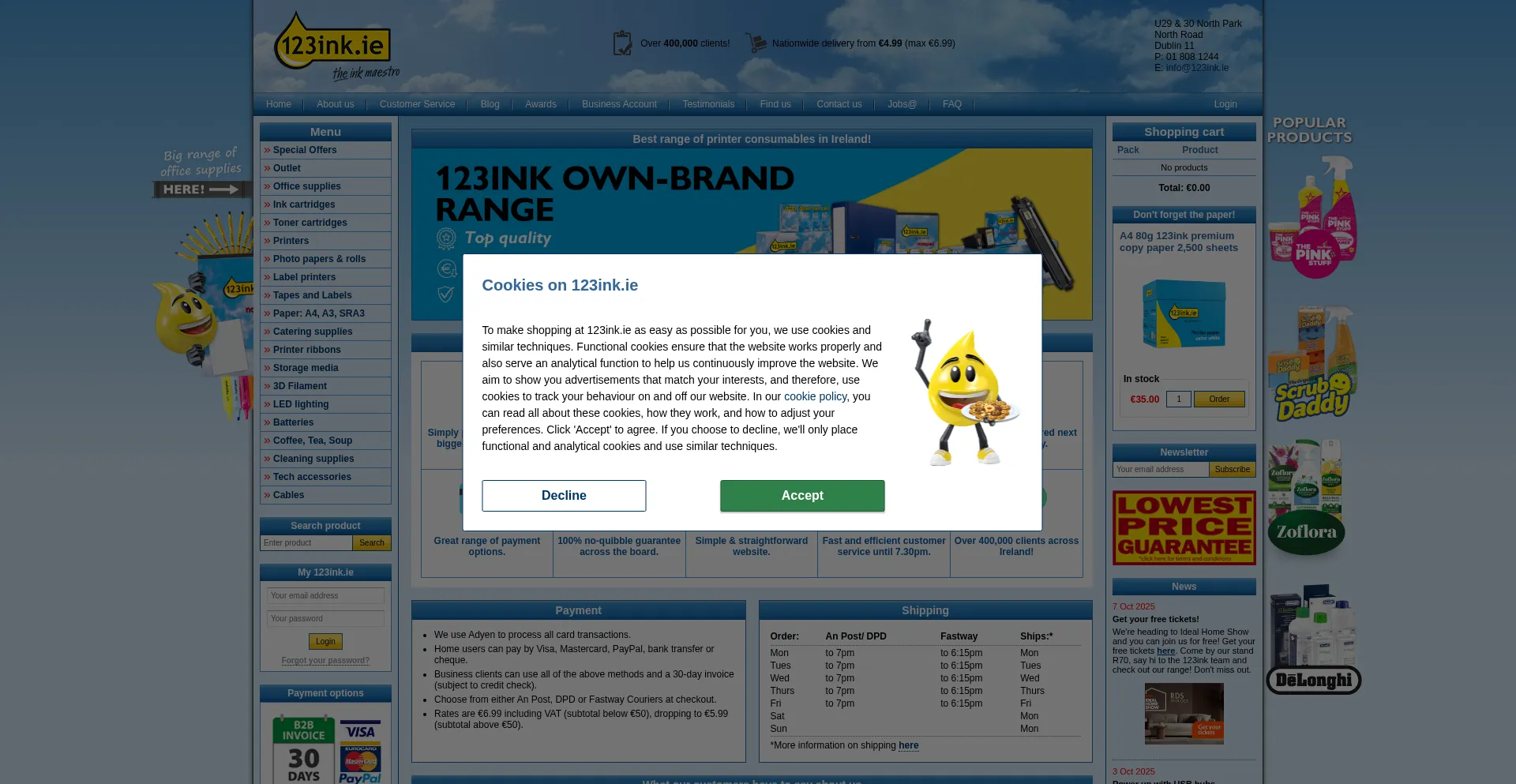 The website implements cookie consent mechanisms in compliance with privacy regulations such as GDPR or CCPA. This demonstrates that 123ink.ie adheres to data protection standards and provides users with control over personal data collection practices.