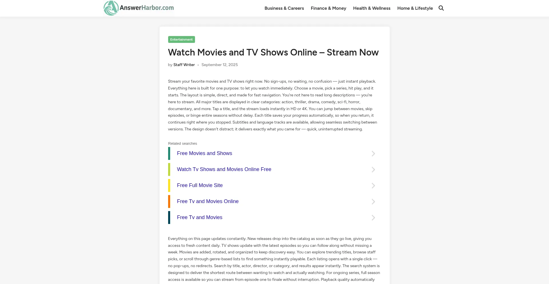 Watch Movies and TV Shows Online – Stream Now – AnswerHarbor.com