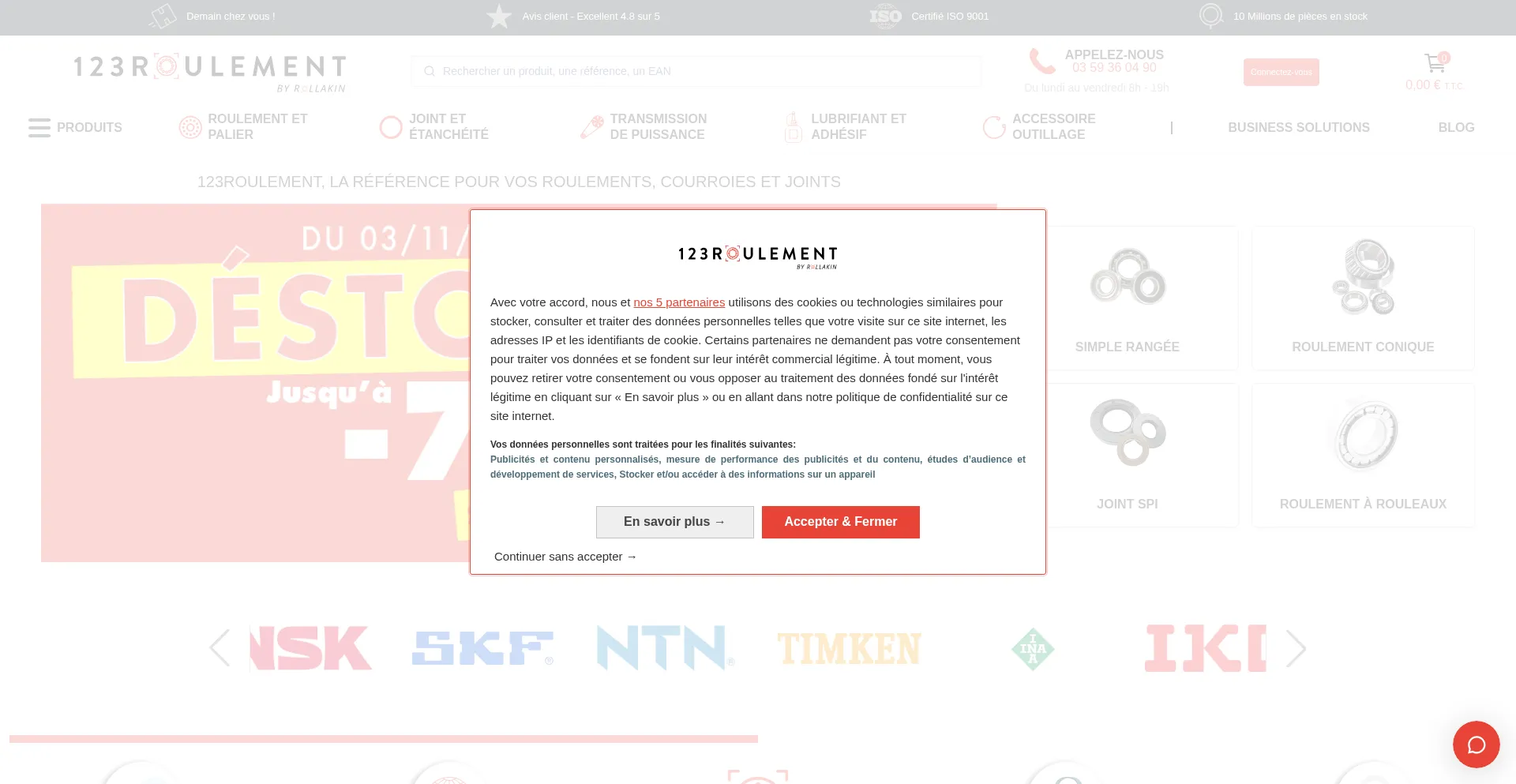 Plus de 10 millions de pièces en stock chez 123Roulement. Roulements, courroies, joints et rotules au meilleur prix et disponibles en stock. Livraison rapide!
