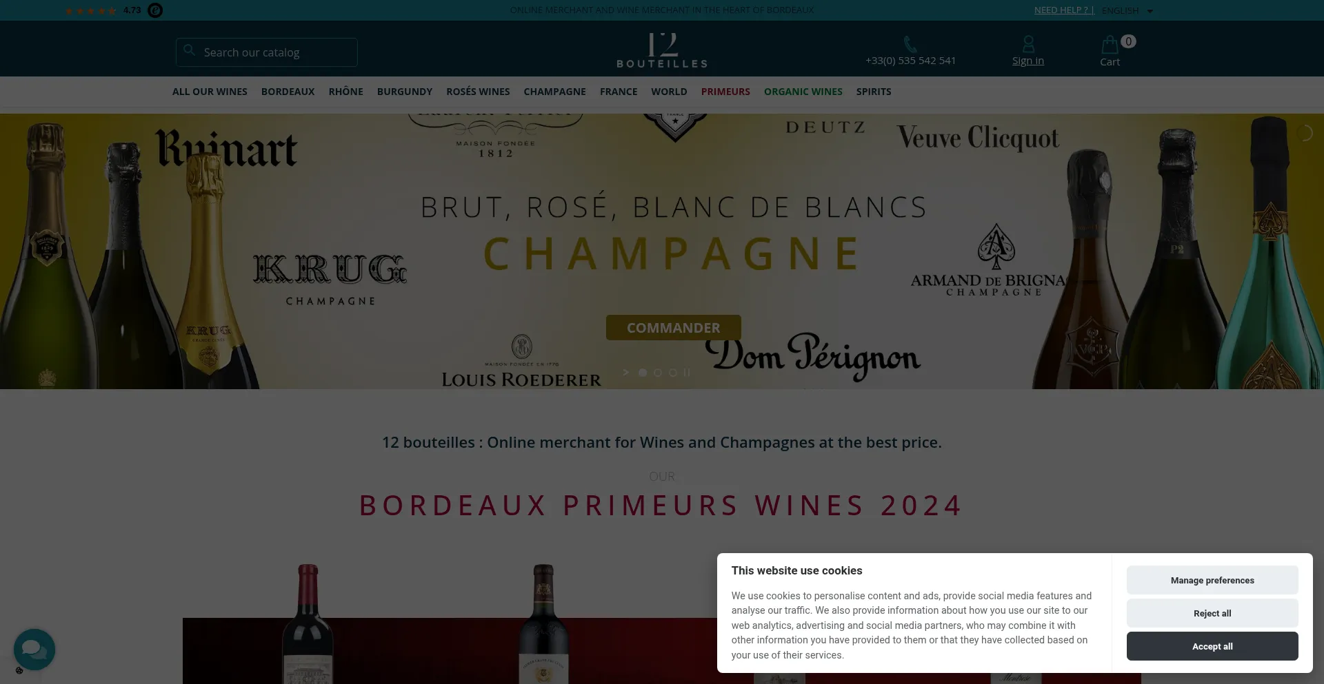 The website implements cookie consent mechanisms in compliance with privacy regulations such as GDPR or CCPA. This demonstrates that 12bouteilles.com adheres to data protection standards and provides users with control over personal data collection practices.