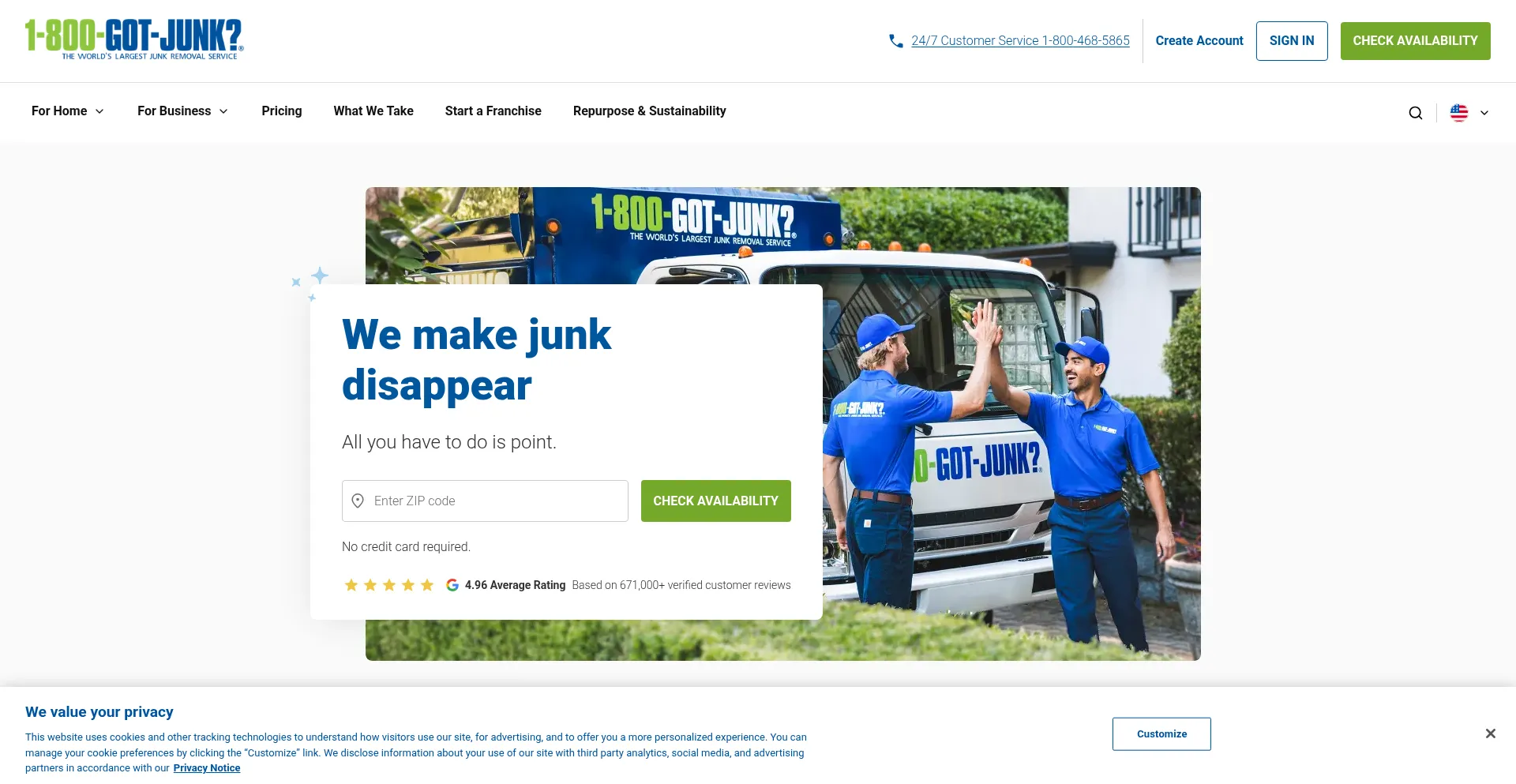 The website implements cookie consent mechanisms in compliance with privacy regulations such as GDPR or CCPA. This demonstrates that 1800gotjunk.com adheres to data protection standards and provides users with control over personal data collection practices.