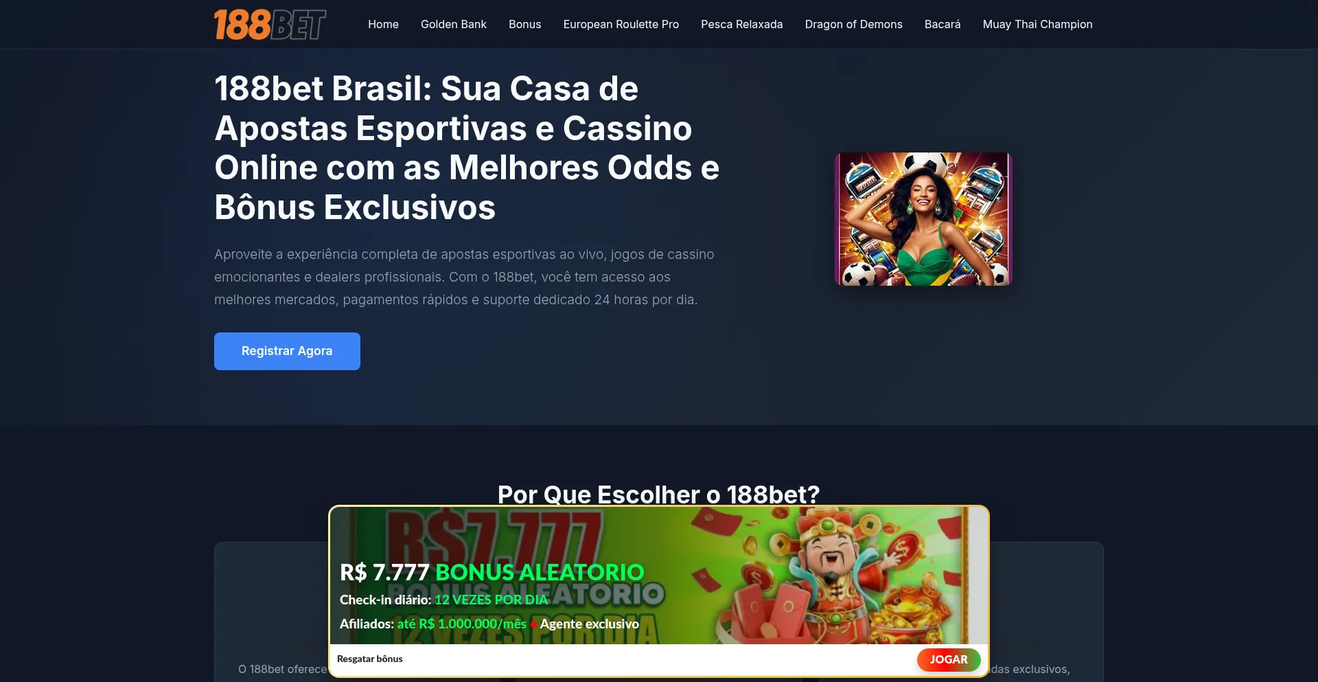 188bet oferece as melhores apostas esportivas, cassino ao vivo e jogos online no Brasil. Bônus exclusivos, odds competitivas e suporte 24/7.