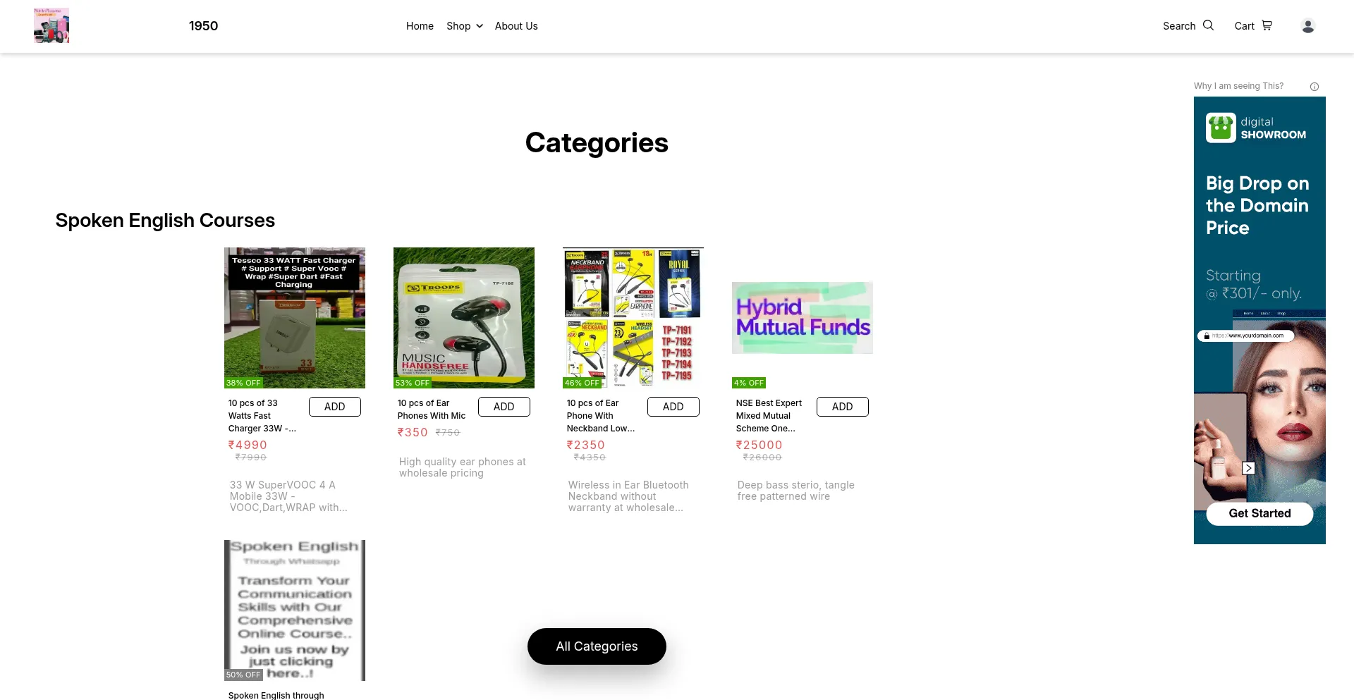 Analysis indicates that 1950.in operates as an e-commerce platform facilitating online transactions for goods or services. The website implements shopping cart functionality, payment processing systems, and product catalog features typical of commercial retail operations.