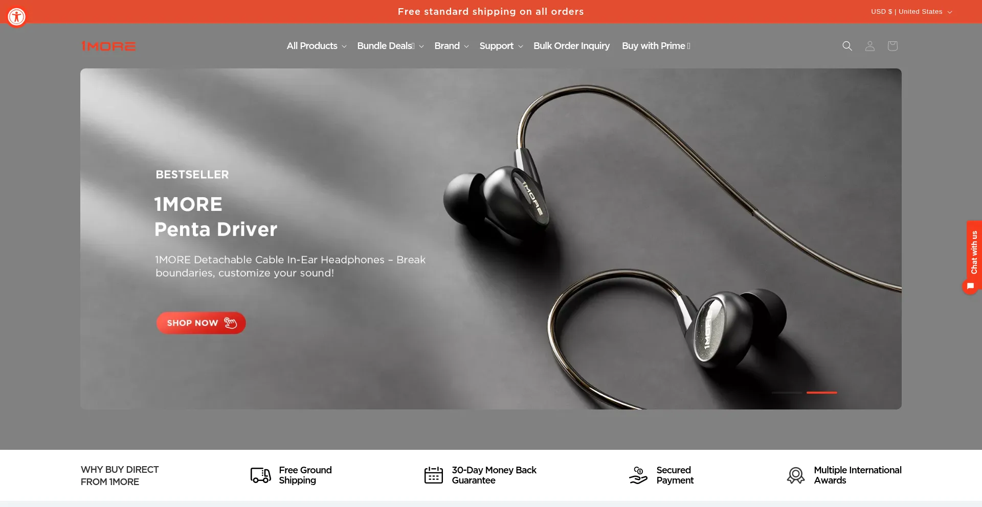 The 1more.com website utilizes free e-commerce platform solutions, which may indicate cost-conscious operations but could also suggest limitations in security features, customer support, or advanced functionality compared to enterprise-grade solutions.