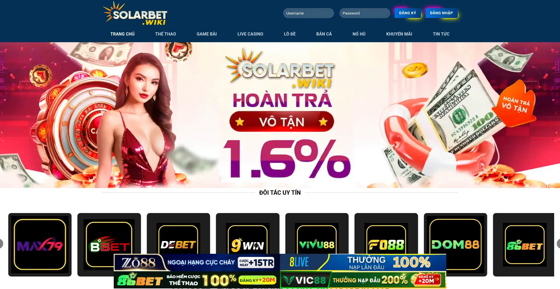 Solarbet là một trong những nhà cái trực tuyến uy tín, chuyên cung cấp cá cược thể thao, casino trực tuyến, slot game và xổ số với trải nghiệ...