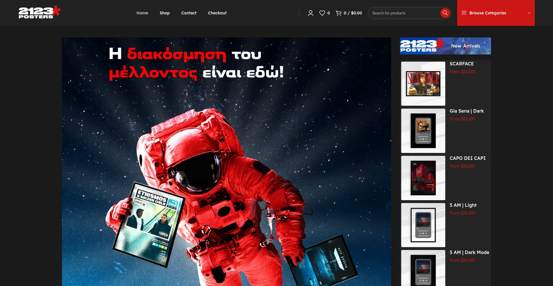 Analysis indicates that 2123posters.com operates as an e-commerce platform facilitating online transactions for goods or services. The website implements shopping cart functionality, payment processing systems, and product catalog features typical of commercial retail operations.