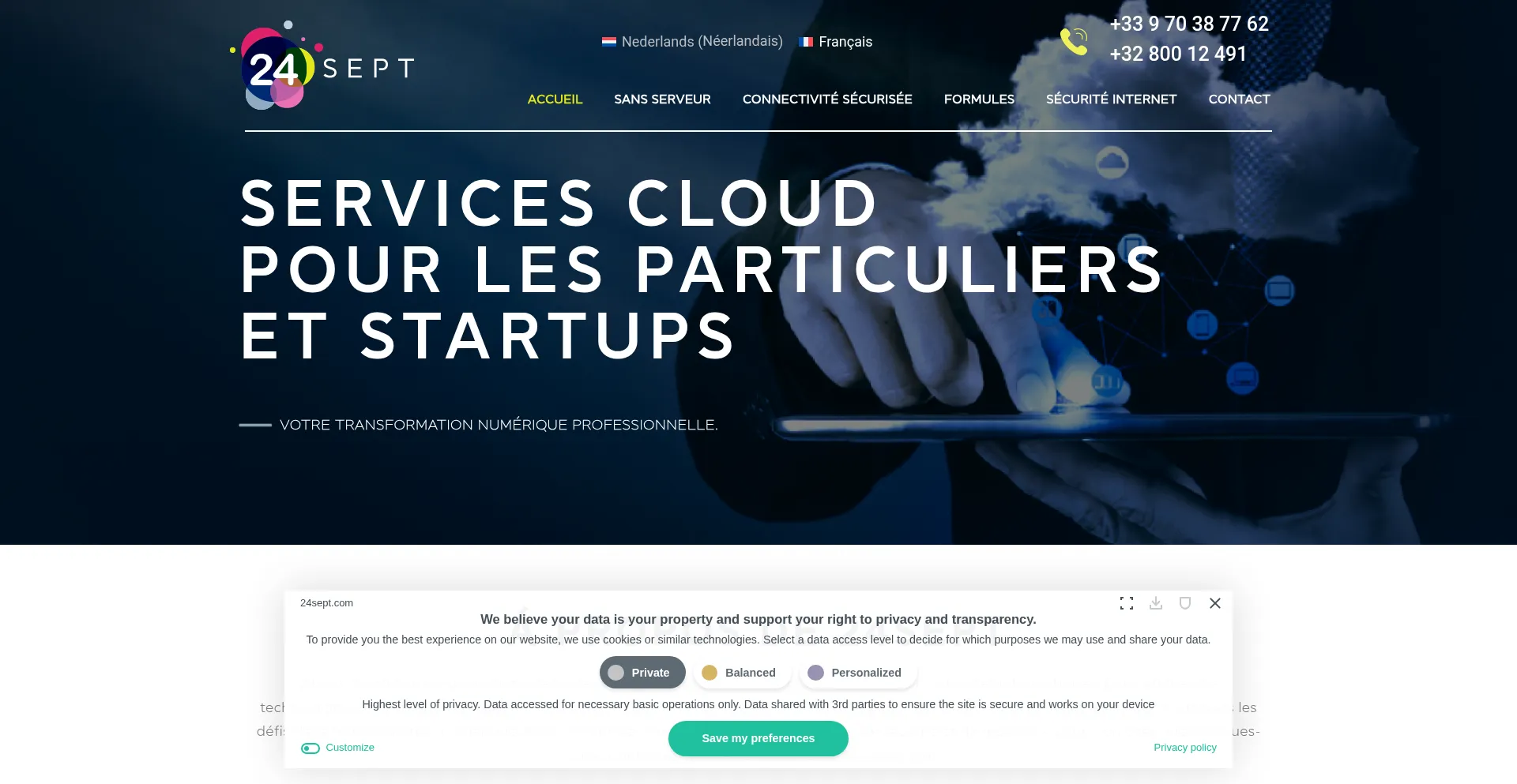 The website implements cookie consent mechanisms in compliance with privacy regulations such as GDPR or CCPA. This demonstrates that 24sept.com adheres to data protection standards and provides users with control over personal data collection practices.