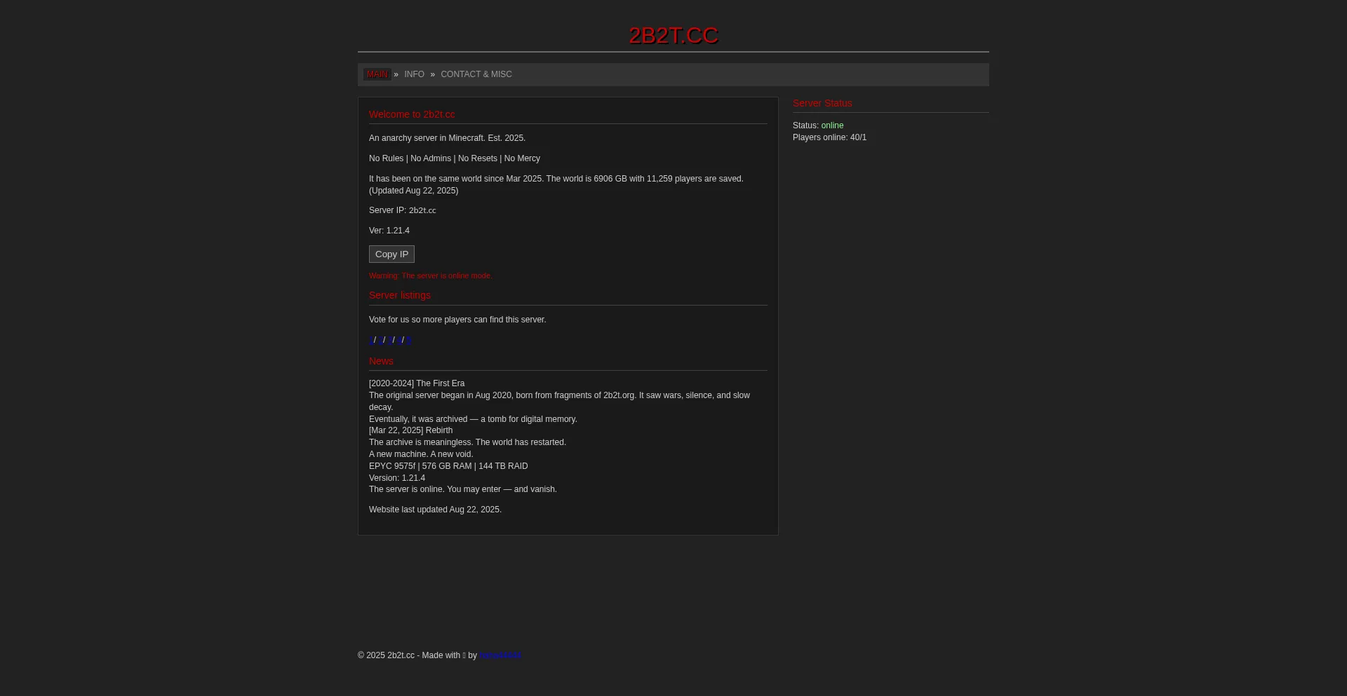 2b2t.CC - The Minecraft anarchy experience since 2025