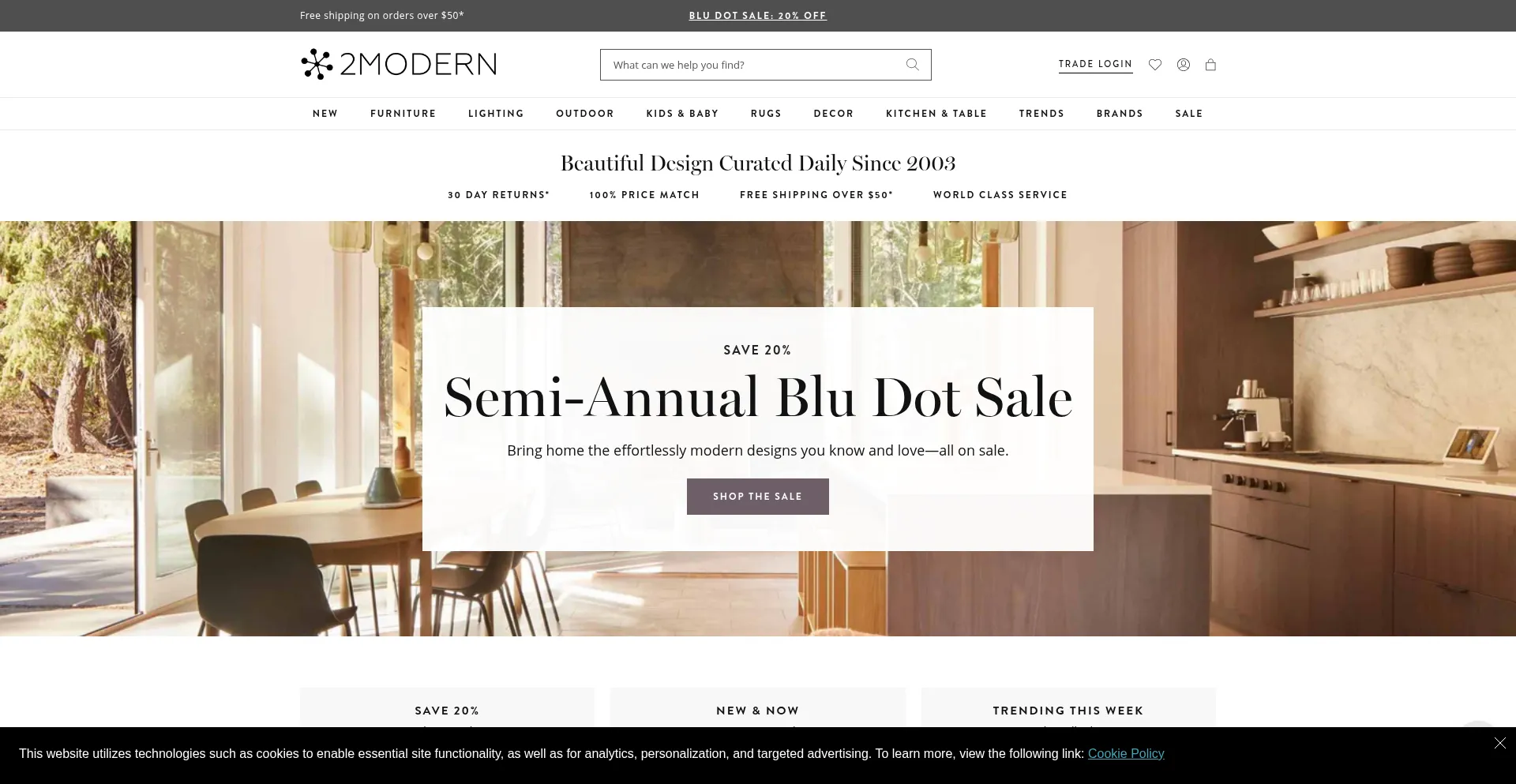 The website implements cookie consent mechanisms in compliance with privacy regulations such as GDPR or CCPA. This demonstrates that 2modern.com adheres to data protection standards and provides users with control over personal data collection practices.