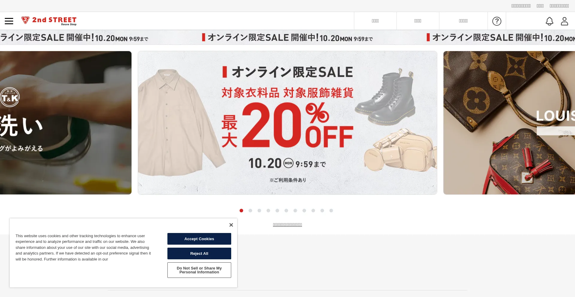 The website implements cookie consent mechanisms in compliance with privacy regulations such as GDPR or CCPA. This demonstrates that 2ndstreet.jp adheres to data protection standards and provides users with control over personal data collection practices.