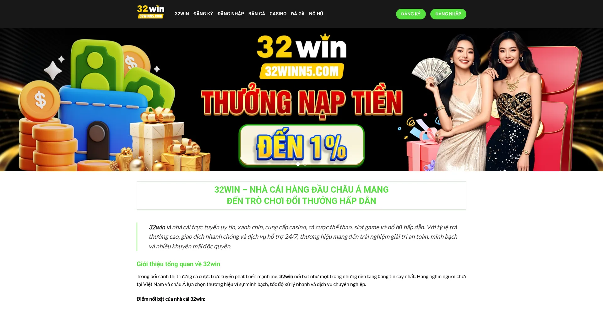 32Win – Nhà Cái Hàng Đầu Châu Á Mang Đến Trò Chơi Đổi Thưởng Hấp Dẫn