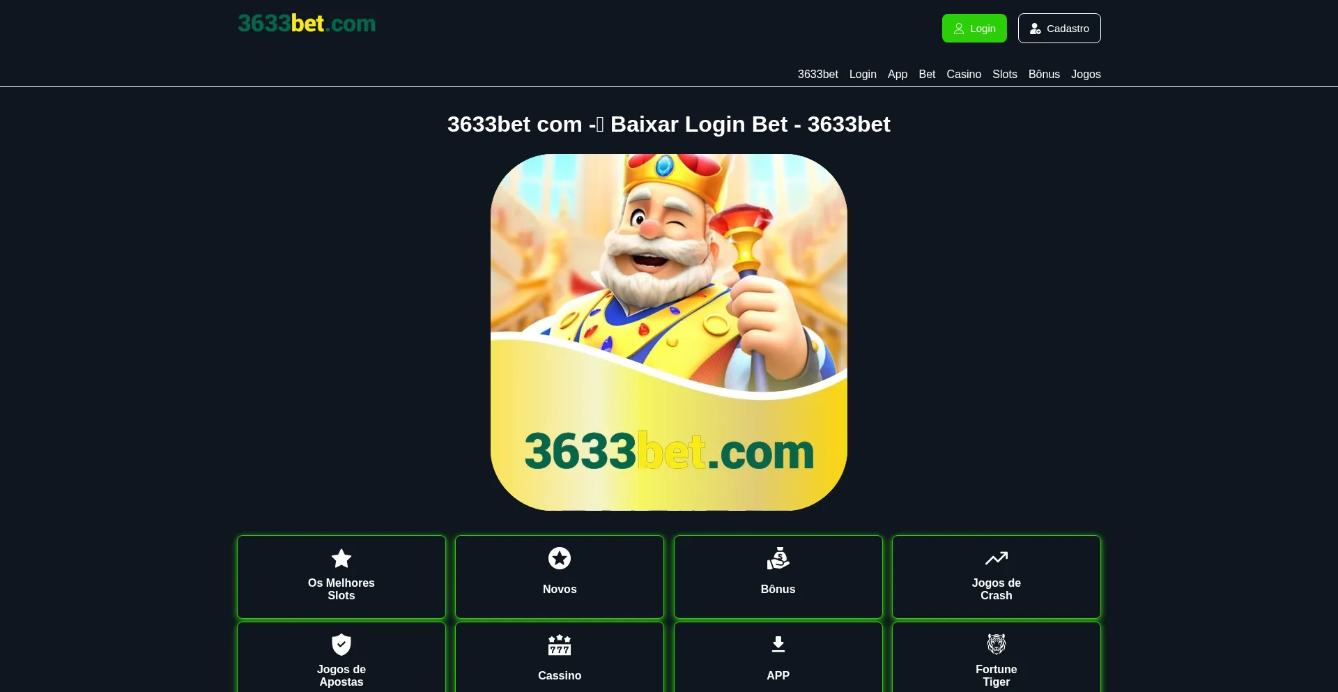 3633bet Cassino online moderno com plataforma confiável, app leve, registro rápido e login simples para acessar os melhores jogos. 3z.com