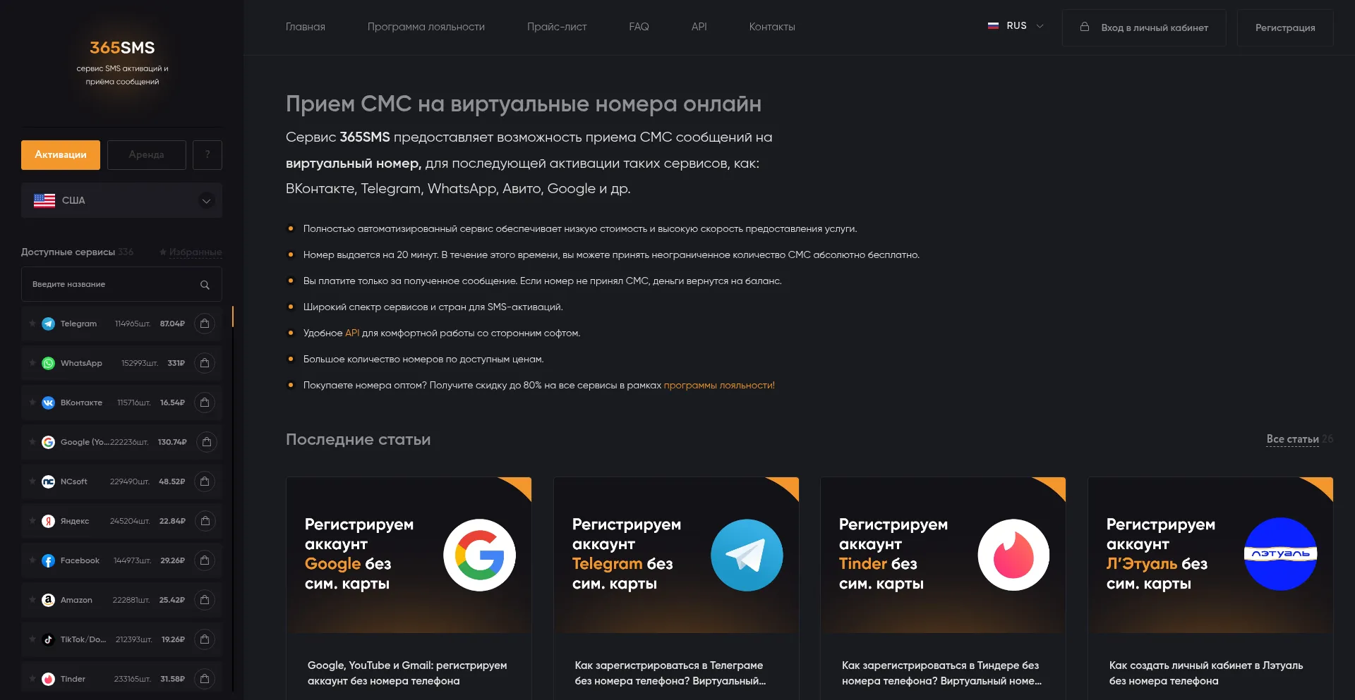 Виртуальные номера для приема СМС и активаций, временные SMS