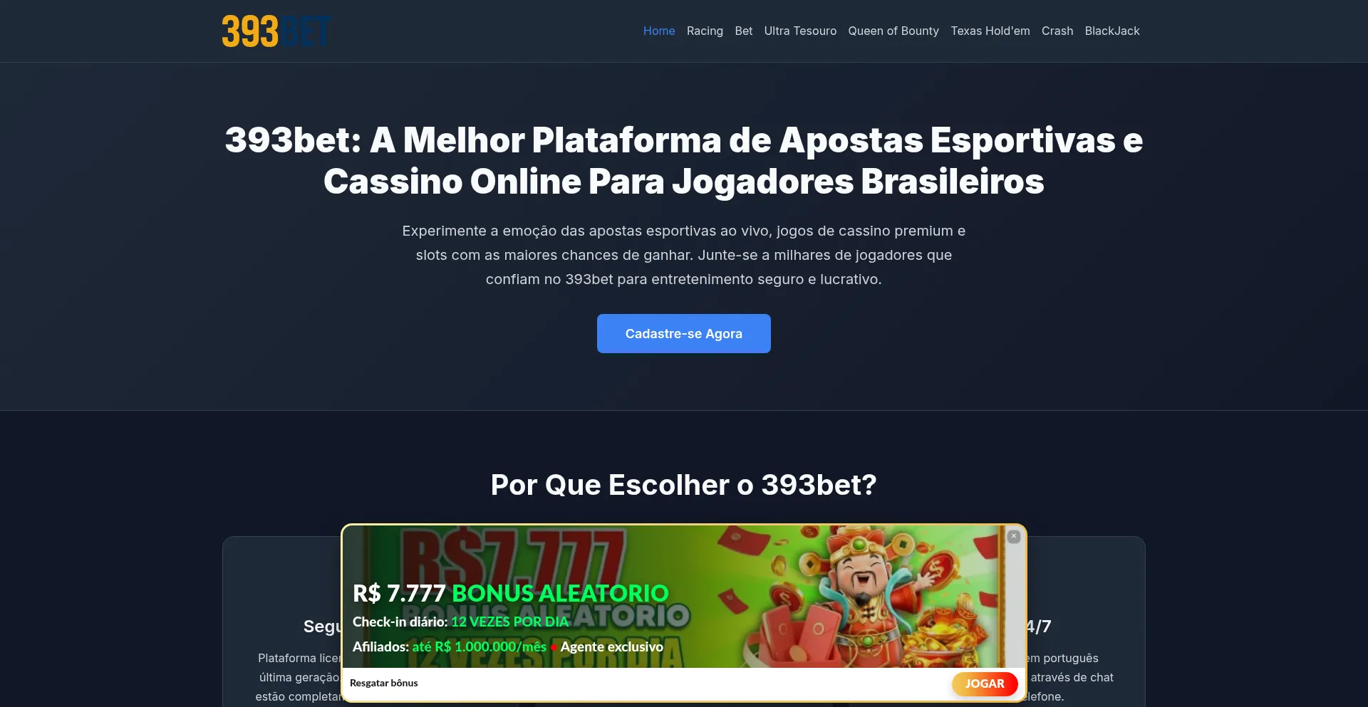 393bet oferece as melhores apostas esportivas, jogos de cassino ao vivo e slots online. Bônus exclusivos, pagamentos rápidos e suporte 24/7 para jogadores brasileiros.