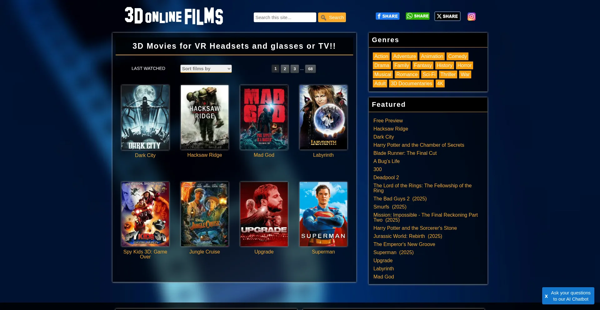 3D online Films: 3D Movies for VR Headsets and glasses or TV