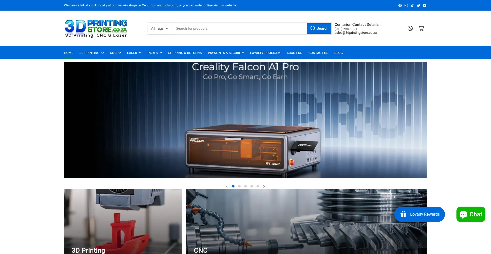Analysis indicates that 3dprintingstore.co.za operates as an e-commerce platform facilitating online transactions for goods or services. The website implements shopping cart functionality, payment processing systems, and product catalog features typical of commercial retail operations.