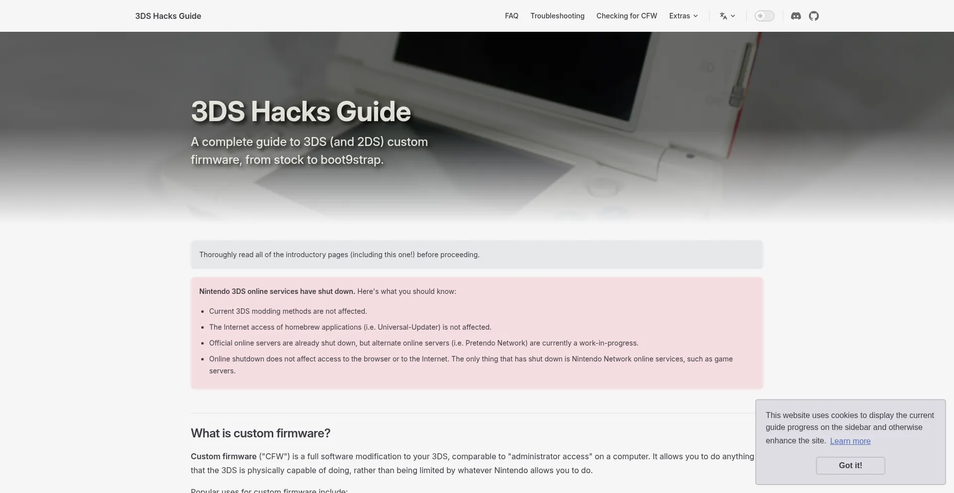 The website implements cookie consent mechanisms in compliance with privacy regulations such as GDPR or CCPA. This demonstrates that 3ds.hacks.guide adheres to data protection standards and provides users with control over personal data collection practices.