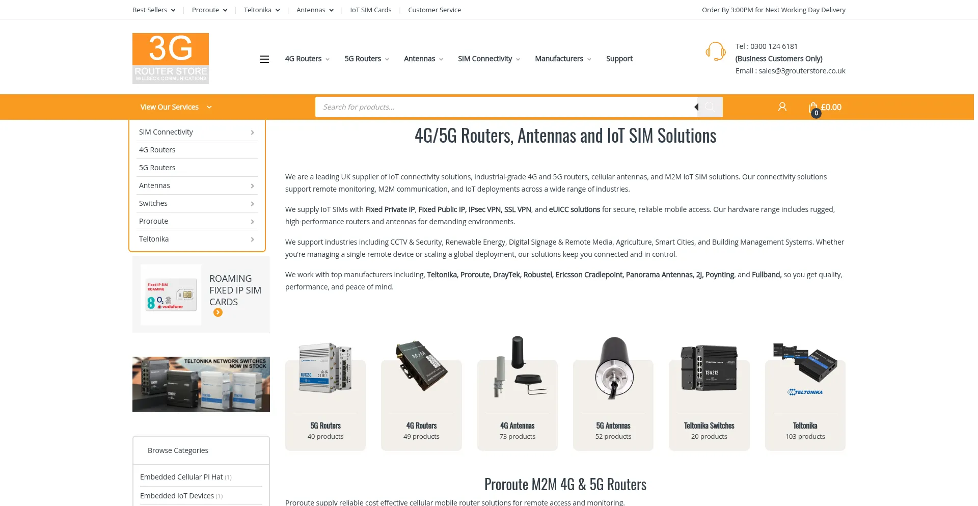 3G / 4G Router Store - Large Stocks Of 4G Routers, 5G Routers, Antennas and Fixed IP SIM Cards For Next Day UK Delivery. Proroute and Teltonika Distributors