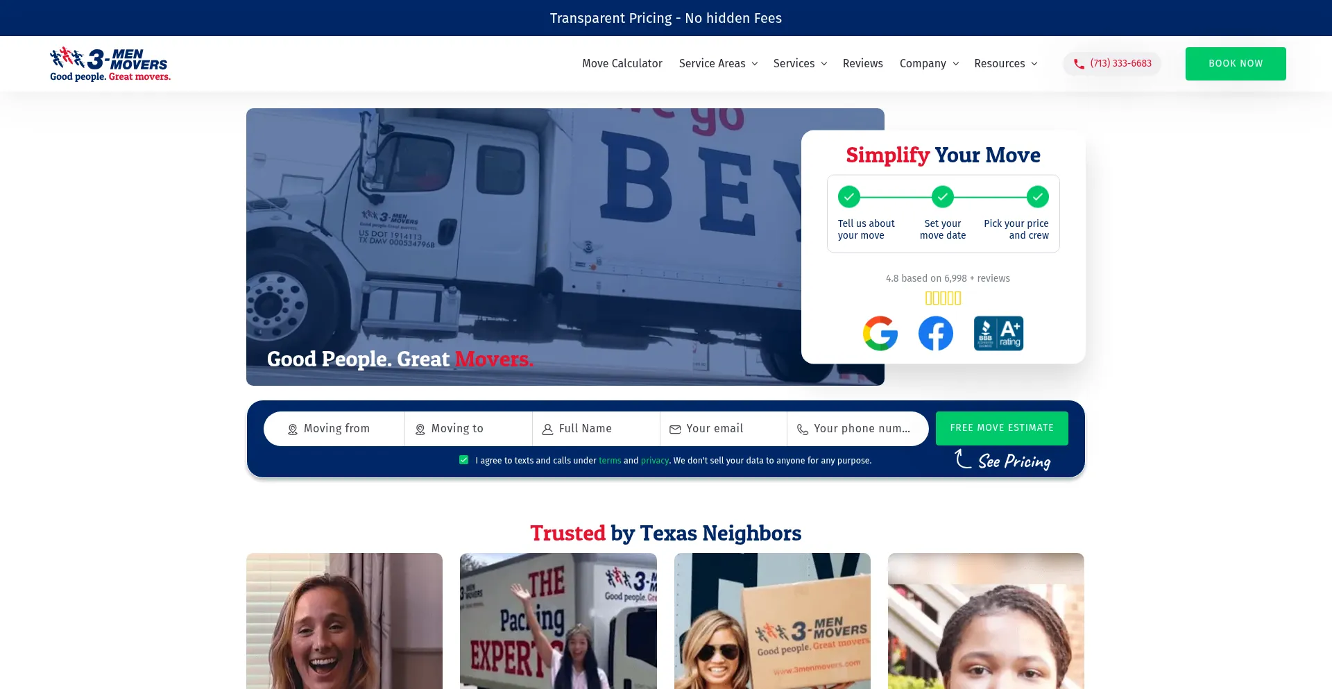 Experience hassle-free residential, apartment, and office moves with 3 Men Movers, proudly serving Texas for over 40 years. Book your move online, and let us handle the rest!
