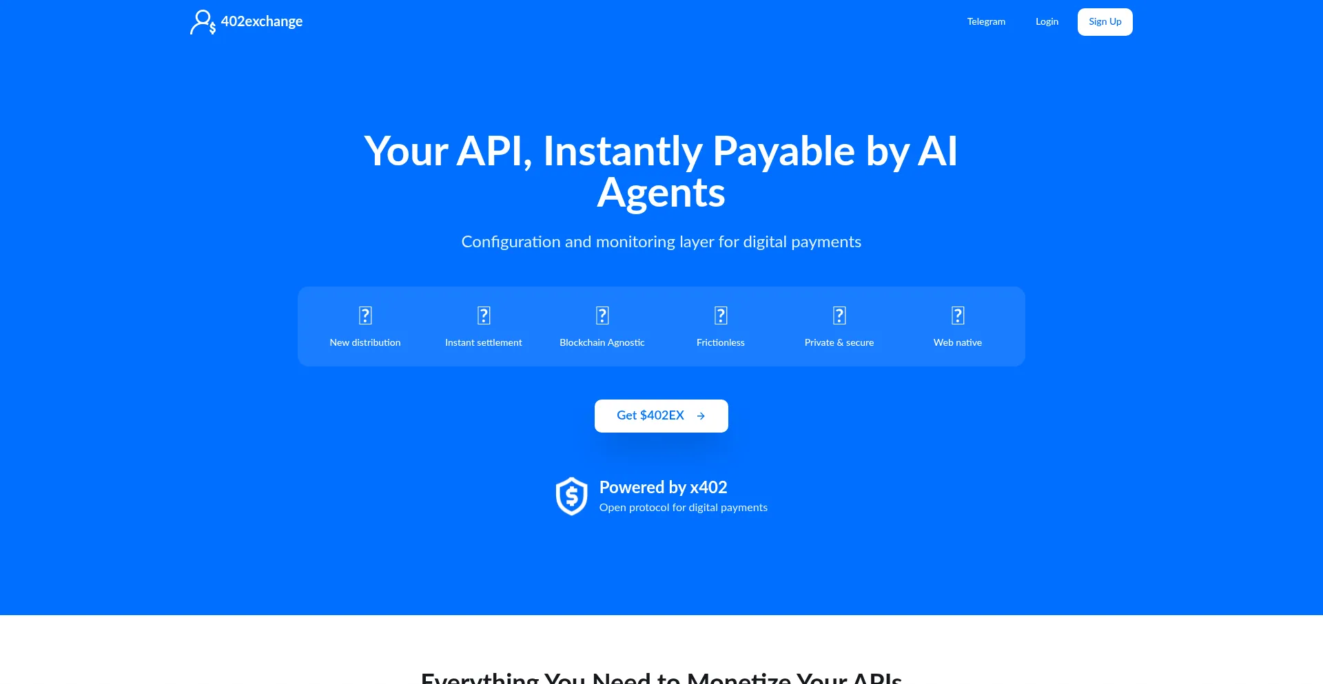 Enables agents to access your paying API. The best way to accept digital payments with instant settlement and blockchain agnostic technology.