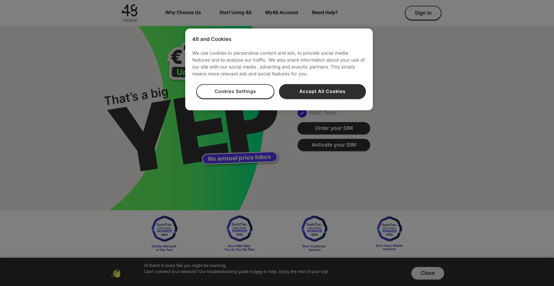 The website implements cookie consent mechanisms in compliance with privacy regulations such as GDPR or CCPA. This demonstrates that 48.ie adheres to data protection standards and provides users with control over personal data collection practices.