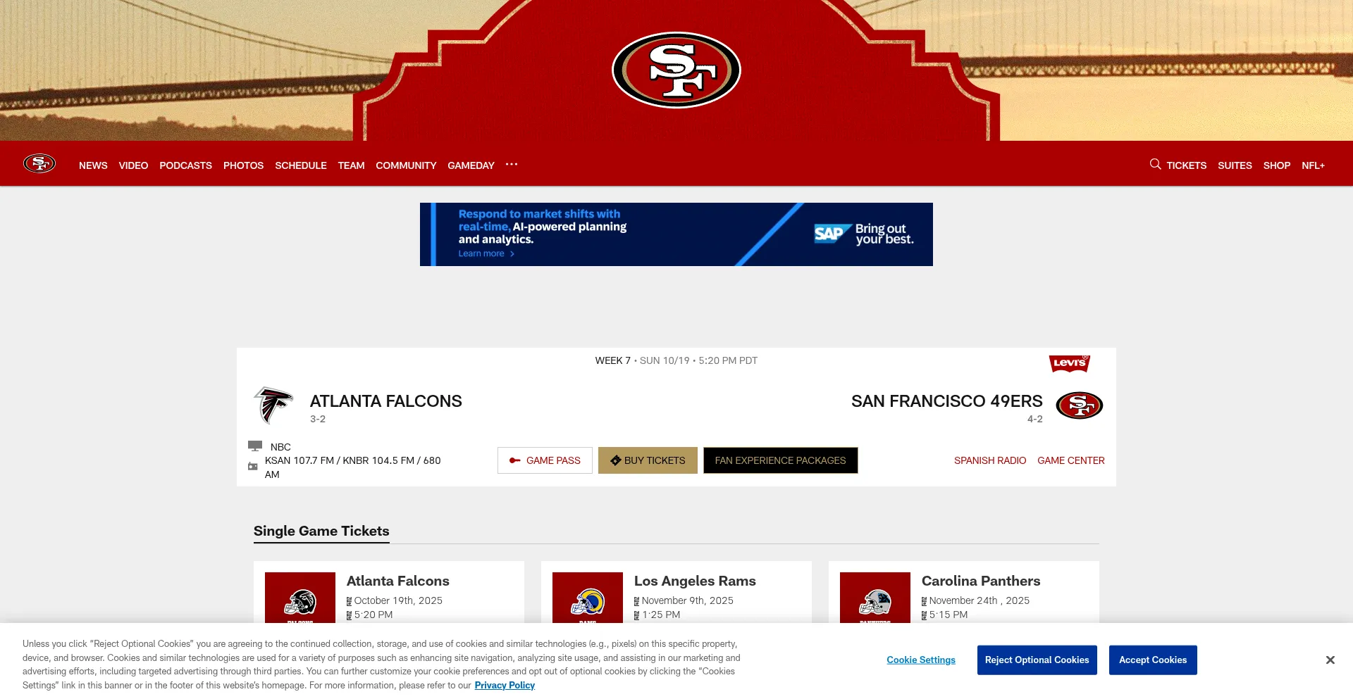 The website implements cookie consent mechanisms in compliance with privacy regulations such as GDPR or CCPA. This demonstrates that 49ers.com adheres to data protection standards and provides users with control over personal data collection practices.