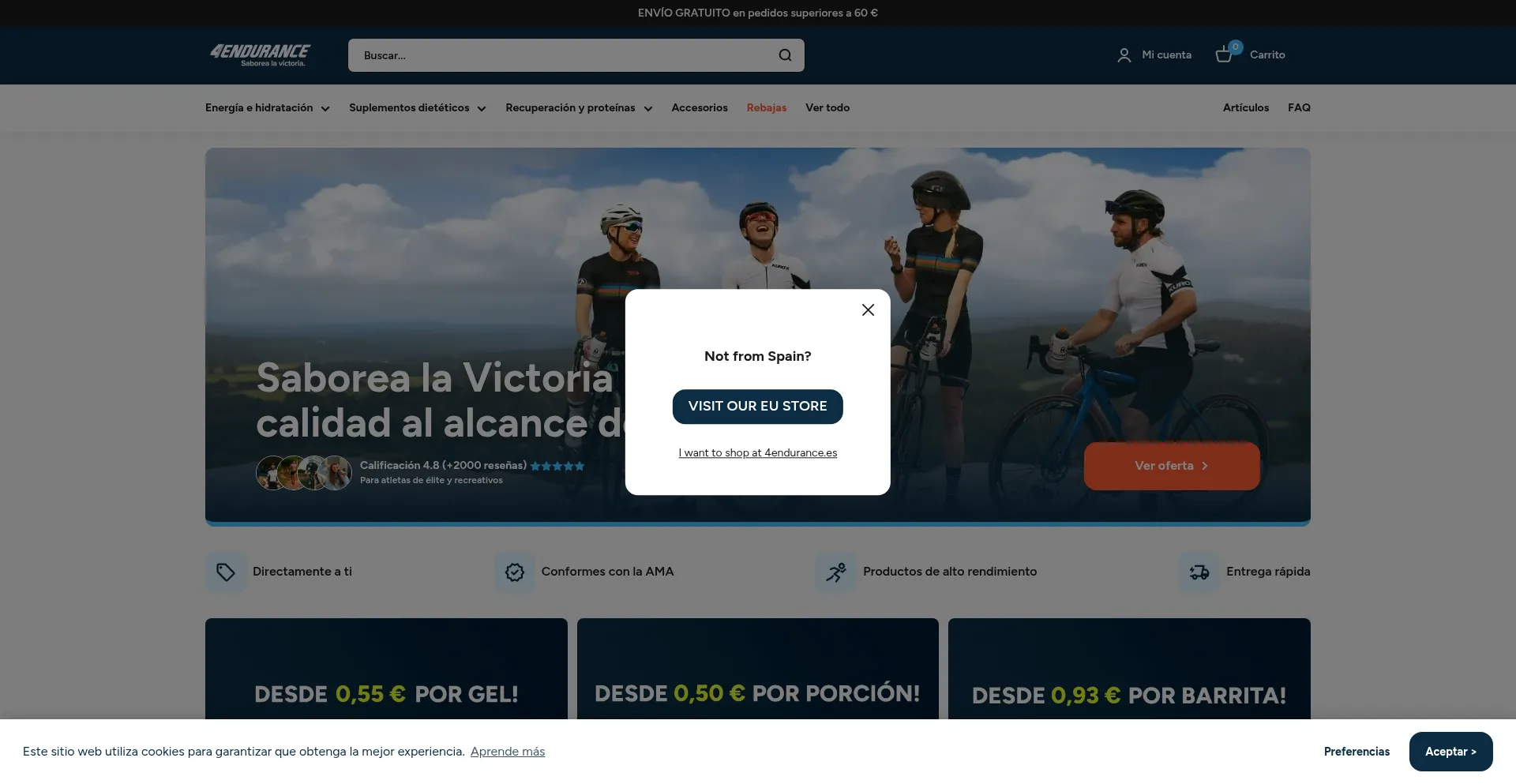 The website leverages popular product names and brands to attract traffic and generate user interest. These products may be offered through promotional campaigns or discount strategies designed to increase visitor engagement and conversion rates for 4endurance.es.