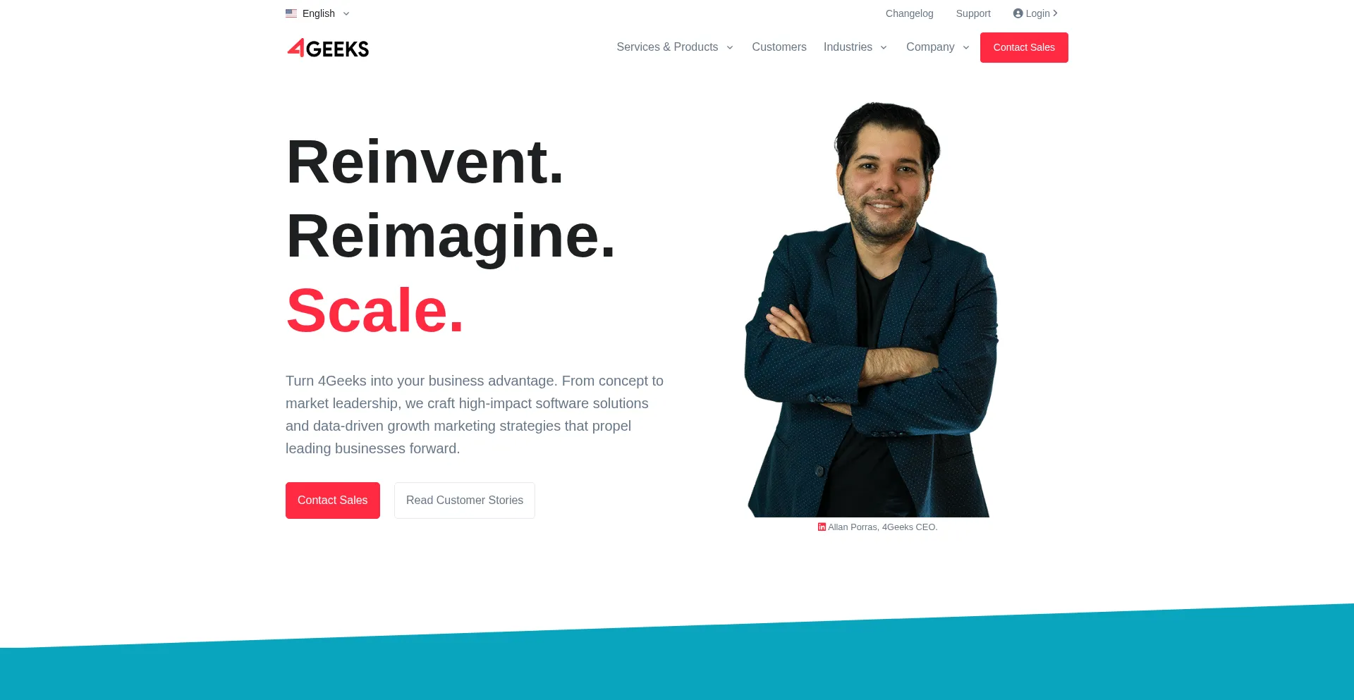 4Geeks is a global product engineering and growth consulting firm for Fortune 500, Global 2000 and fast-growing startups, that designs, builds and grows profitable businesses.