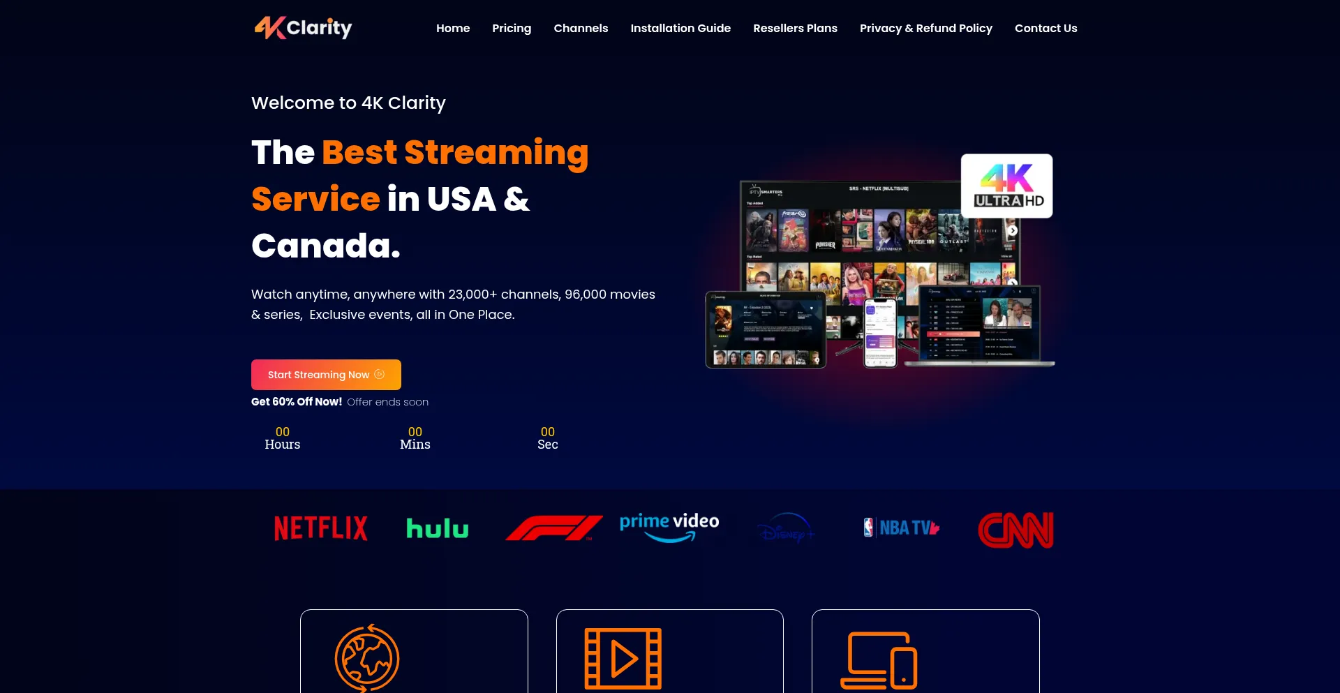 Watch anytime, anywhere with 30,000+ channels, 120,000 movies & series,  PPV Sport events, all in One Place in 4K Clarity.