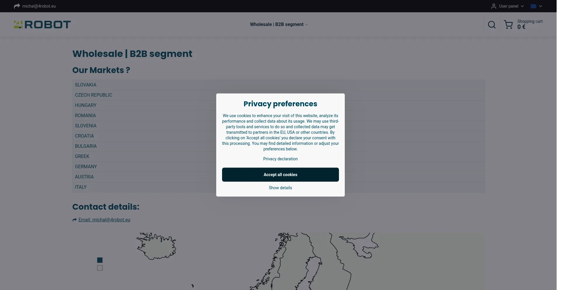 The website implements cookie consent mechanisms in compliance with privacy regulations such as GDPR or CCPA. This demonstrates that 4robot.eu adheres to data protection standards and provides users with control over personal data collection practices.