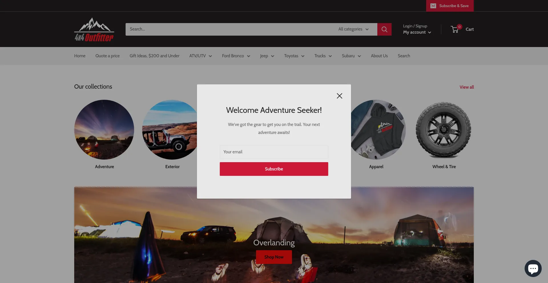 Shop now for all the latest and greatest Jeep, Toyota, Truck and off-road and overlanding accessories. We offer Lighting, Suspension, Bumpers, Interior, Tent's, Coolers & much m...