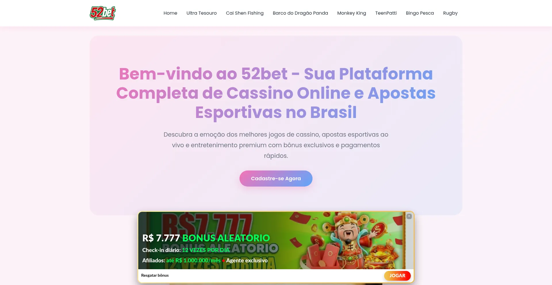 52bet oferece os melhores jogos de cassino online, apostas esportivas e entretenimento ao vivo. Bônus exclusivos e pagamentos rápidos para jogadores brasileiros.