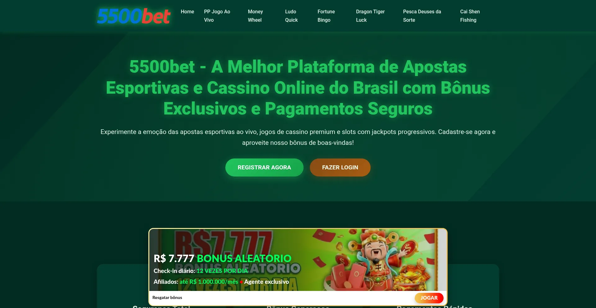 5500bet oferece as melhores apostas esportivas, jogos de cassino ao vivo e slots online. Bônus exclusivos, pagamentos rápidos e segurança garantida para jogadores brasileiros.