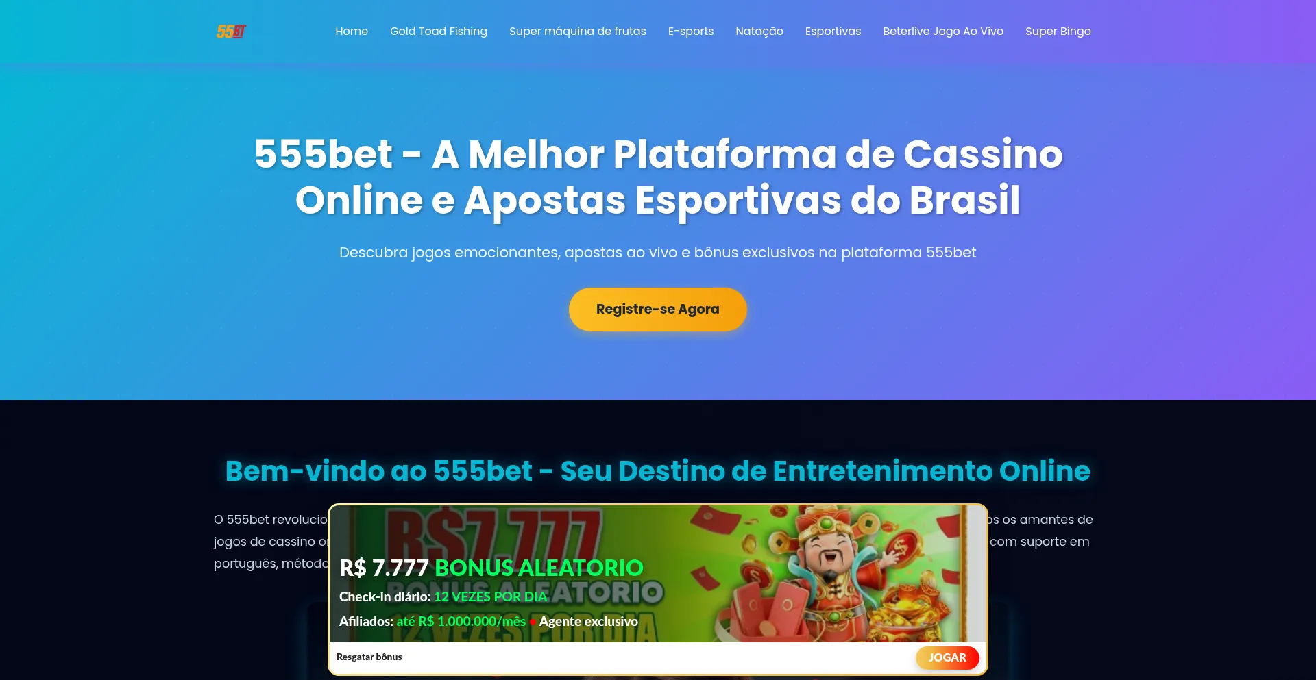 555bet oferece os melhores jogos de cassino online, apostas esportivas ao vivo, slots, fishing games e muito mais. Bônus exclusivos para jogadores brasileiros.