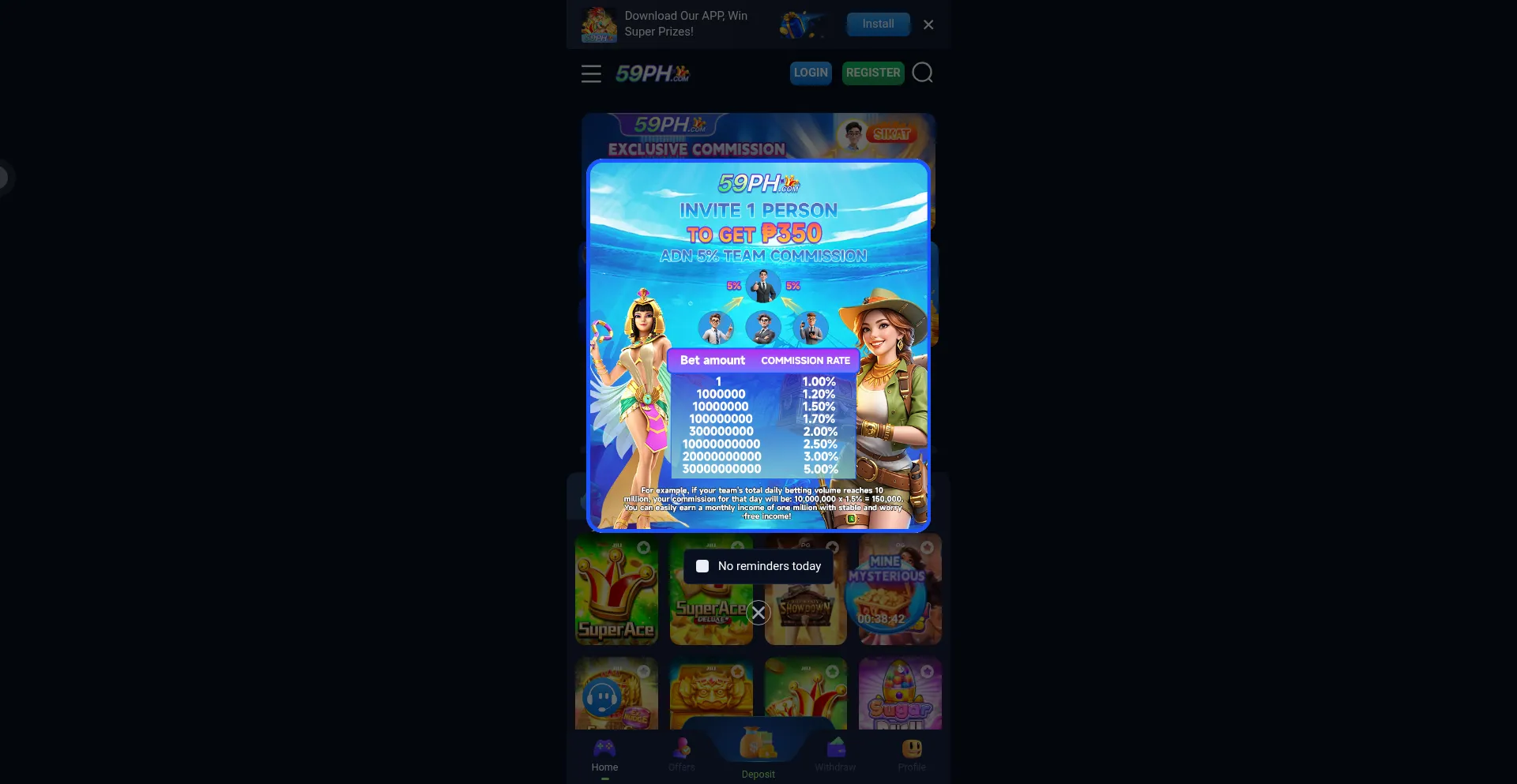 Sign up on 59PH now After registration, claim daily bonuses up to ₱9,999 — with instant deposits and withdrawals!