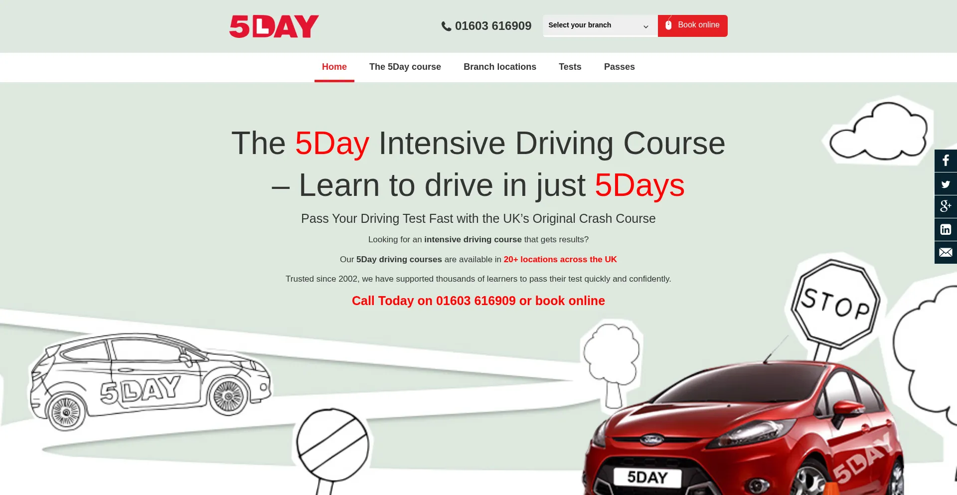 Learn to drive in just 5DAYs with our 5DAY intensive driving course. Located at centres around the UK, we provide you with a perfect learning environment.