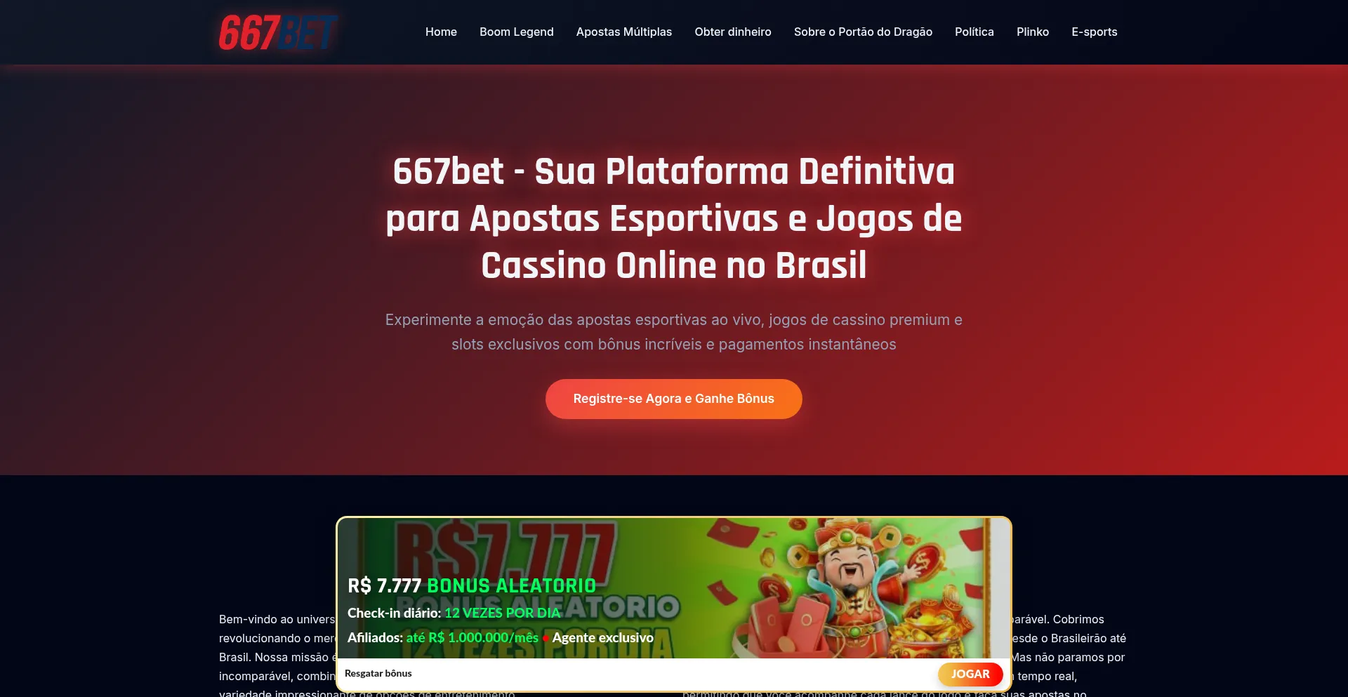 667bet oferece as melhores apostas esportivas, jogos de cassino ao vivo e slots online. Bônus exclusivos, pagamentos rápidos e suporte 24/7 para jogadores brasileiros.