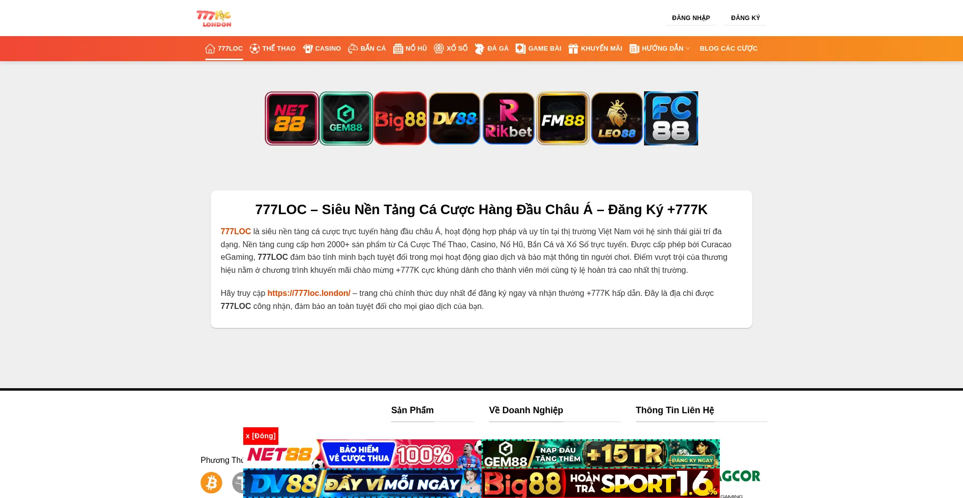777LOC – Siêu Nền Tảng Cá Cược Hàng Đầu Châu Á - Đăng Ký +777K