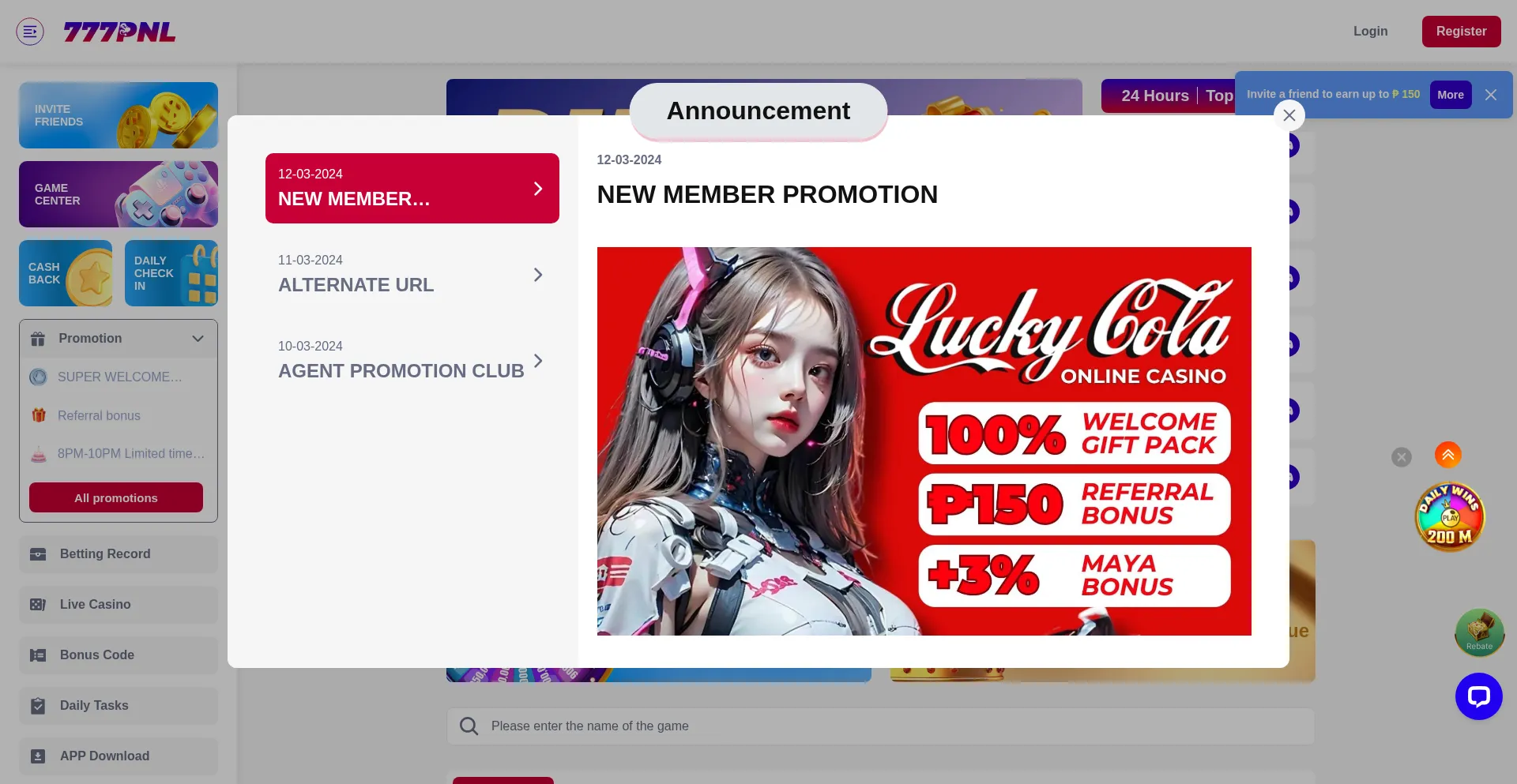 777PNL-Referral Bouns ₱150.Download App get ₱188.