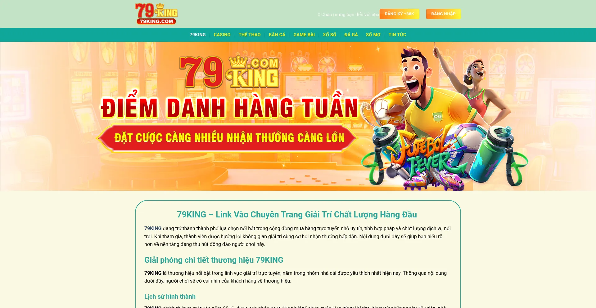 79KING nằm trong top 10 nhà cái uy tín châu Á, mang đến không gian cá cược minh bạch, sôi động và được vận hành dưới sự bảo hộ của cơ qu...