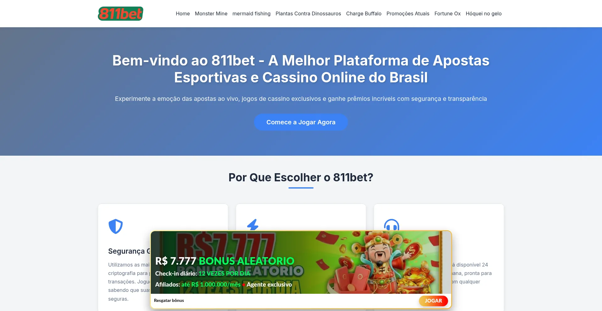 811bet oferece as melhores apostas esportivas, jogos de cassino ao vivo e slots online. Bônus exclusivos, pagamentos rápidos e suporte 24/7 para jogadores brasileiros.