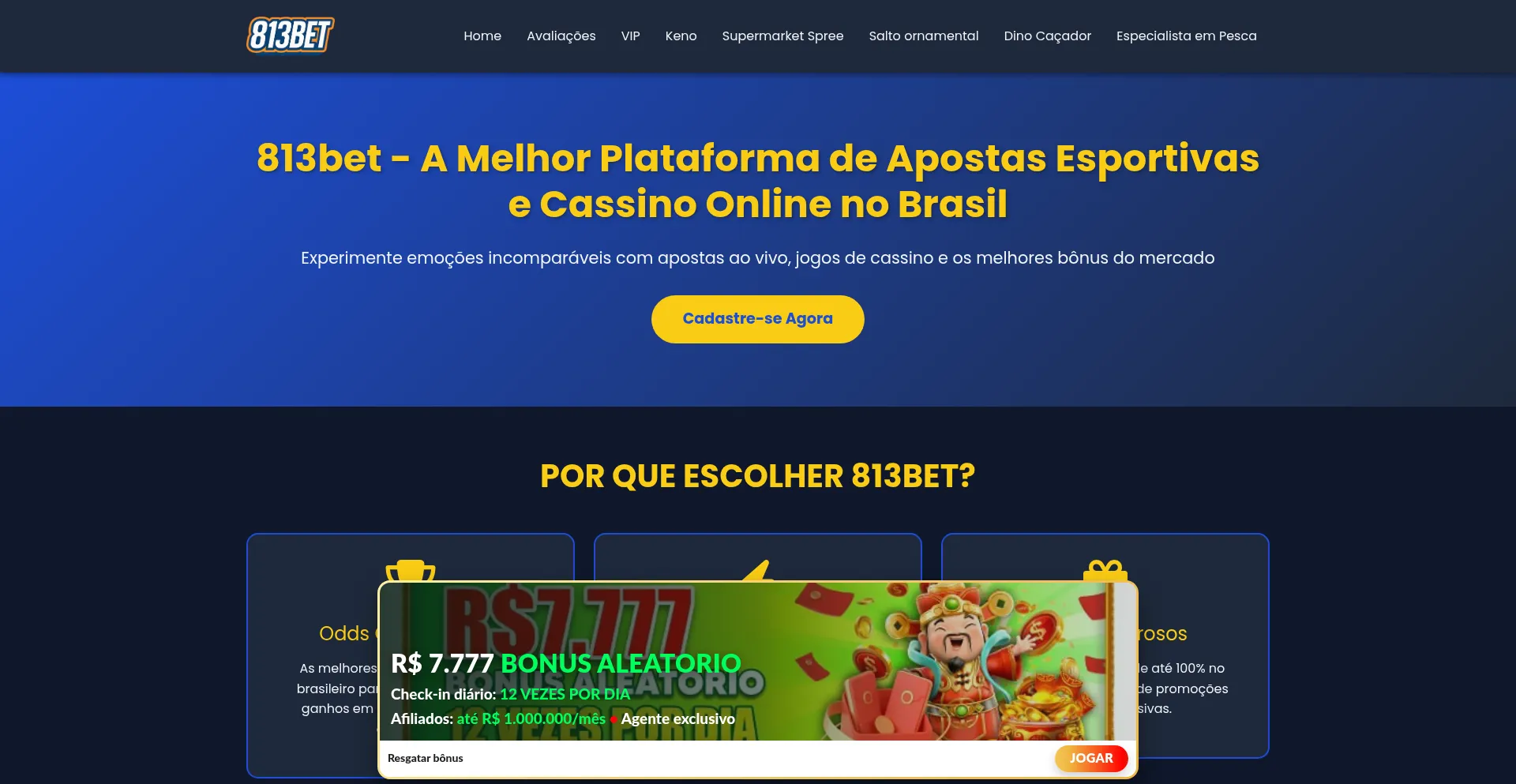 813bet oferece as melhores apostas esportivas, jogos de cassino ao vivo e slots online no Brasil. Bônus de boas-vindas, odds competitivas e pagamentos rápidos.
